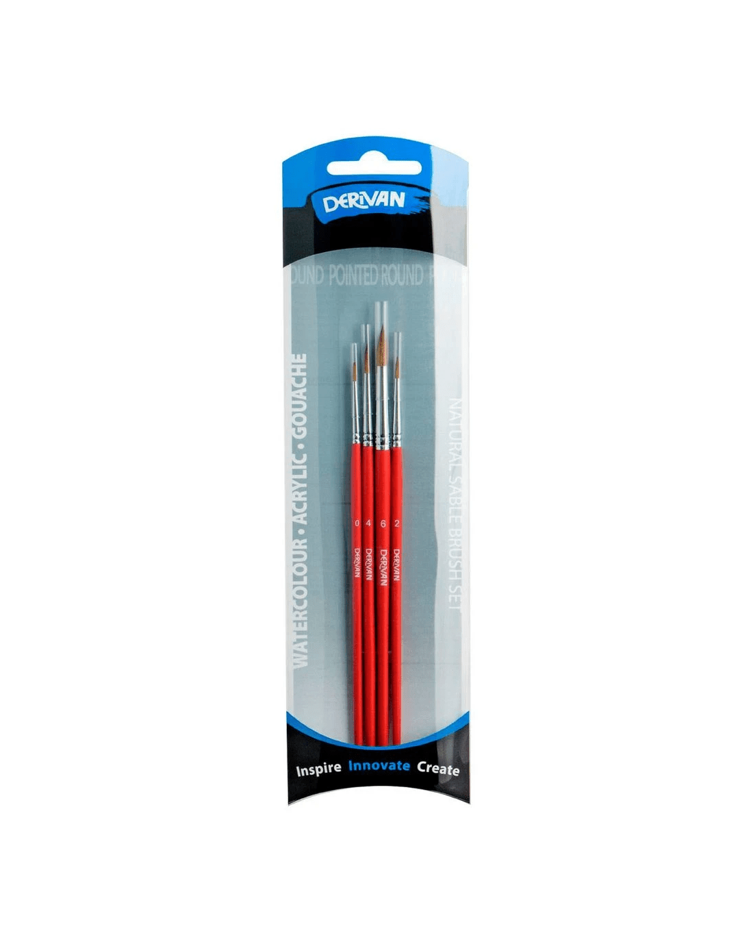 Sold by OfficeworksDerivan Short Handle Round Sable Paintbrush Set 4 Pack