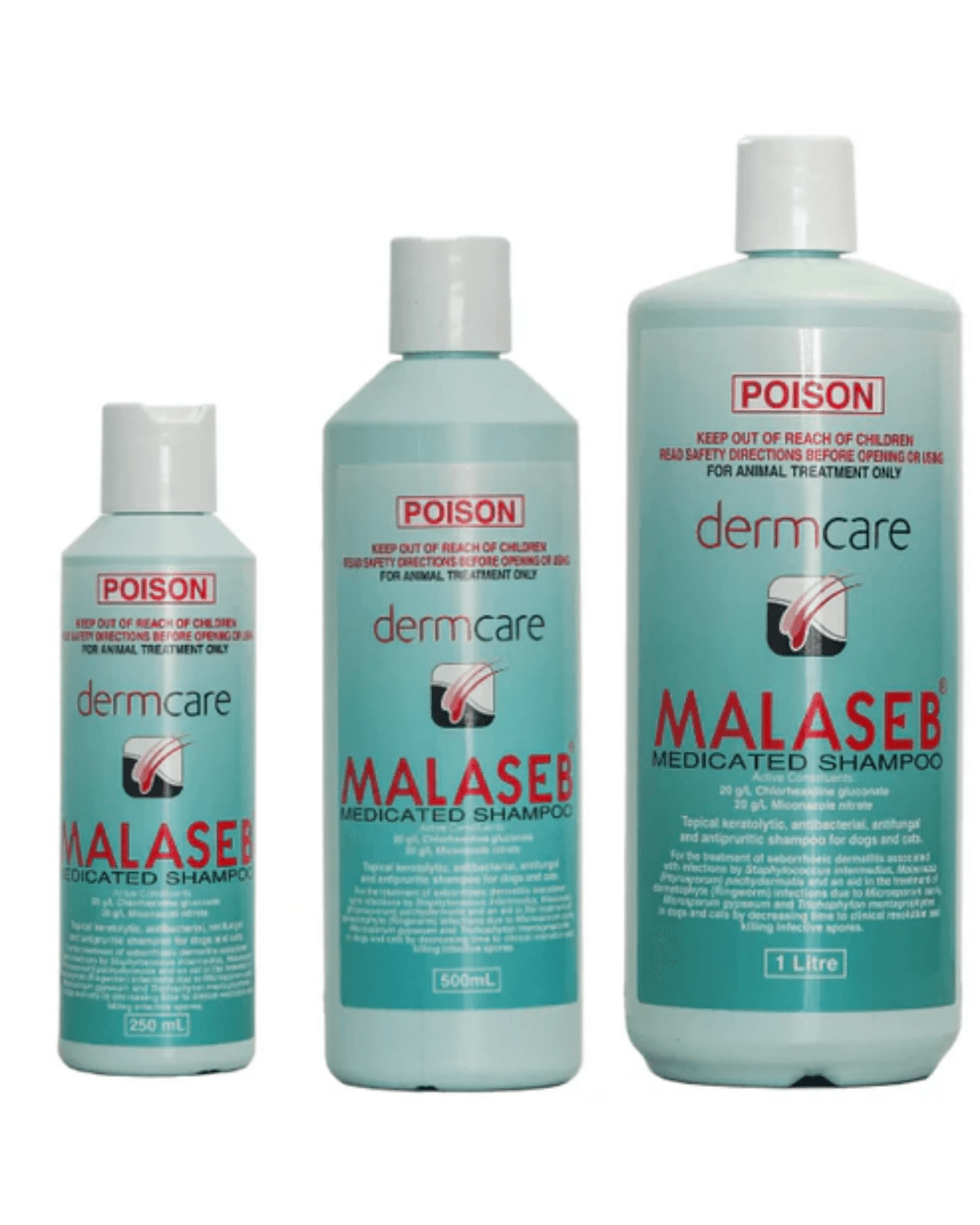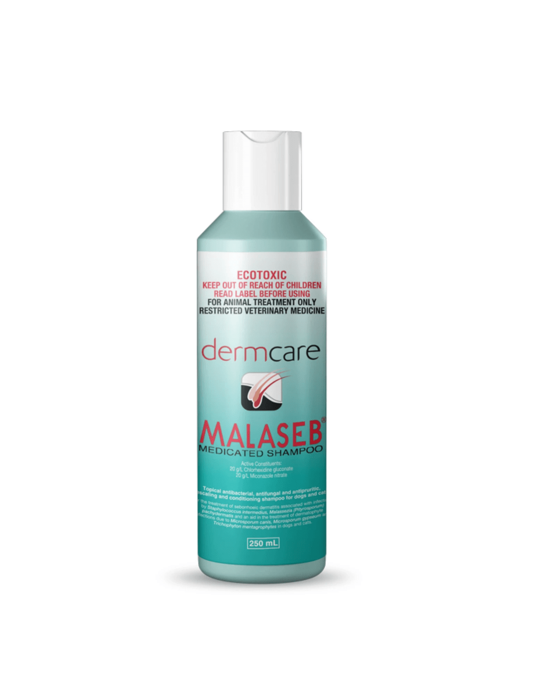 Dermcare Malaseb Medicated Shampoo is formulated to treat Seborrhoeic Dermatitis and aid in the treatment of Dermatophytosis (ringworm) in pets. Seborrhoeic Dermatitis is a bacterial and yeast skin infection, while Dermatophytosis is a contagious fungal disease affecting the skin and coat.