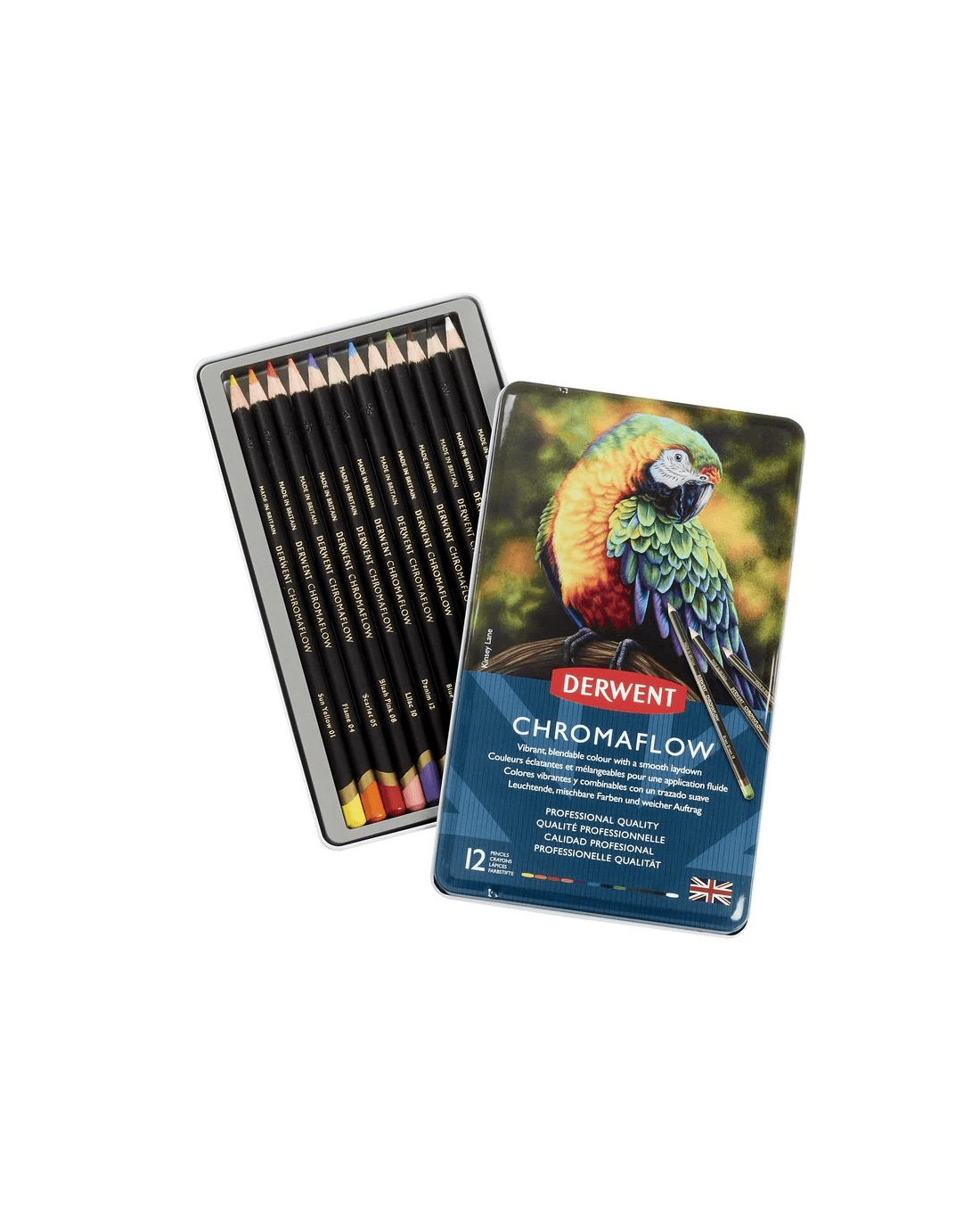 These Derwent Chromaflow Coloured Pencils boast rich pigments with creamy, smooth laydown and exceptional colour saturation. They feature break-resistant, 3.5 mm cores and are ideal for layering and creating bold colour gradations.