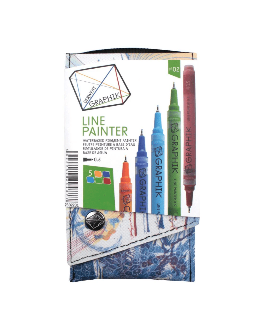 This Derwent Graphik Line Painter Palette contains 5 pens with 0.5 mm nibs for precise markings. Each paint pen is filled with lightfast and permanent ink so you can be confident that your works of art will last. The ink is water based and can be diluted with water allowing you to create washes and experiment with watercolour effects.
