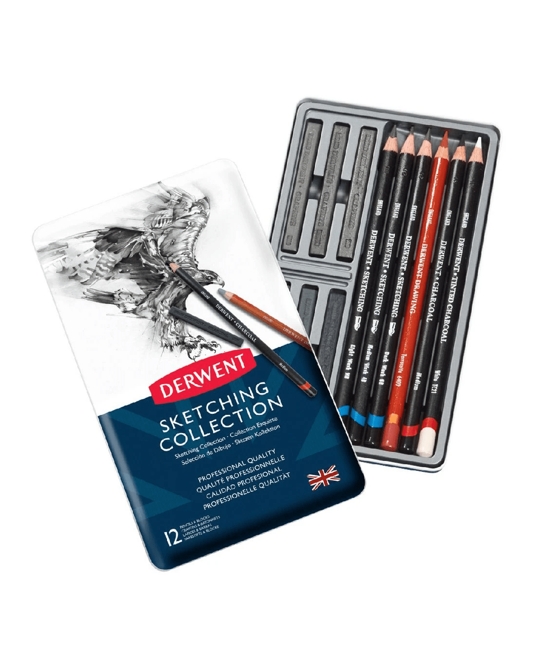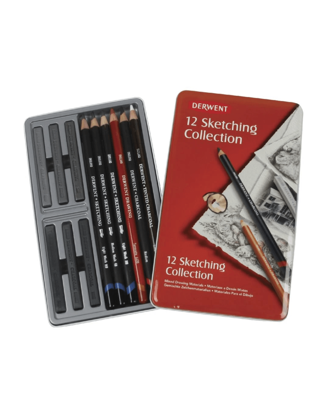 This Derwent Sketching Collection Pencil Set is made up of sketching pencils, graphite pencils, charcoal blocks and more allowing you to mix your art. The pencils are water soluble so you can use them with water to develop unique wash effects.