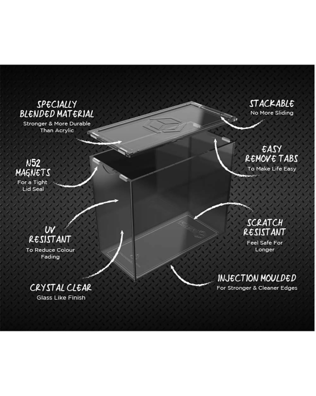 Designed specifically to hold and display Pokemon booster boxes, each shell secures your cherished collections from scratches, UV and accidents while maintaining your ETB's visual charm. The lid seals smoothly using magnets, and can stack on top of other Box Protectors too. Perfect for storage, display and retaining your collection's value.