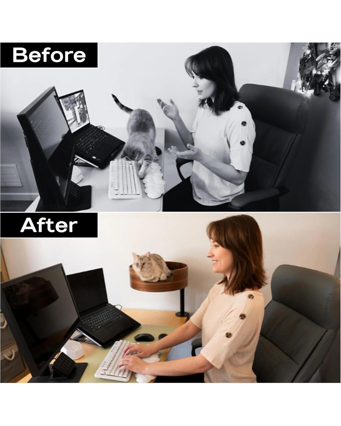 • [Fully Adjustable for the Perfect Fit] Designed with a 360° rotating base and vertical height adjustment, the cat desk nest allows you to customize the perfect setup for your workspace. Whether placed beside a laptop or near a monitor, this desk cat perch adapts seamlessly. Requires only 4.5" (11.4 cm) of desk space, making it ideal for small and large desks alike.