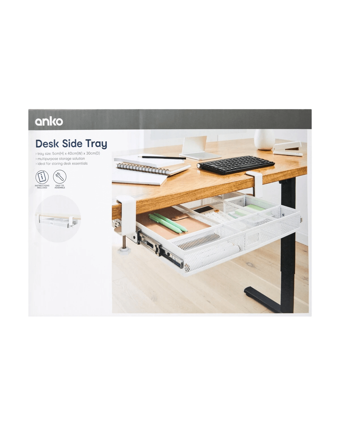 Streamline your workspace with the Desk Side Tray, a practical and multipurpose storage solution designed to keep your desk essentials neatly organised.