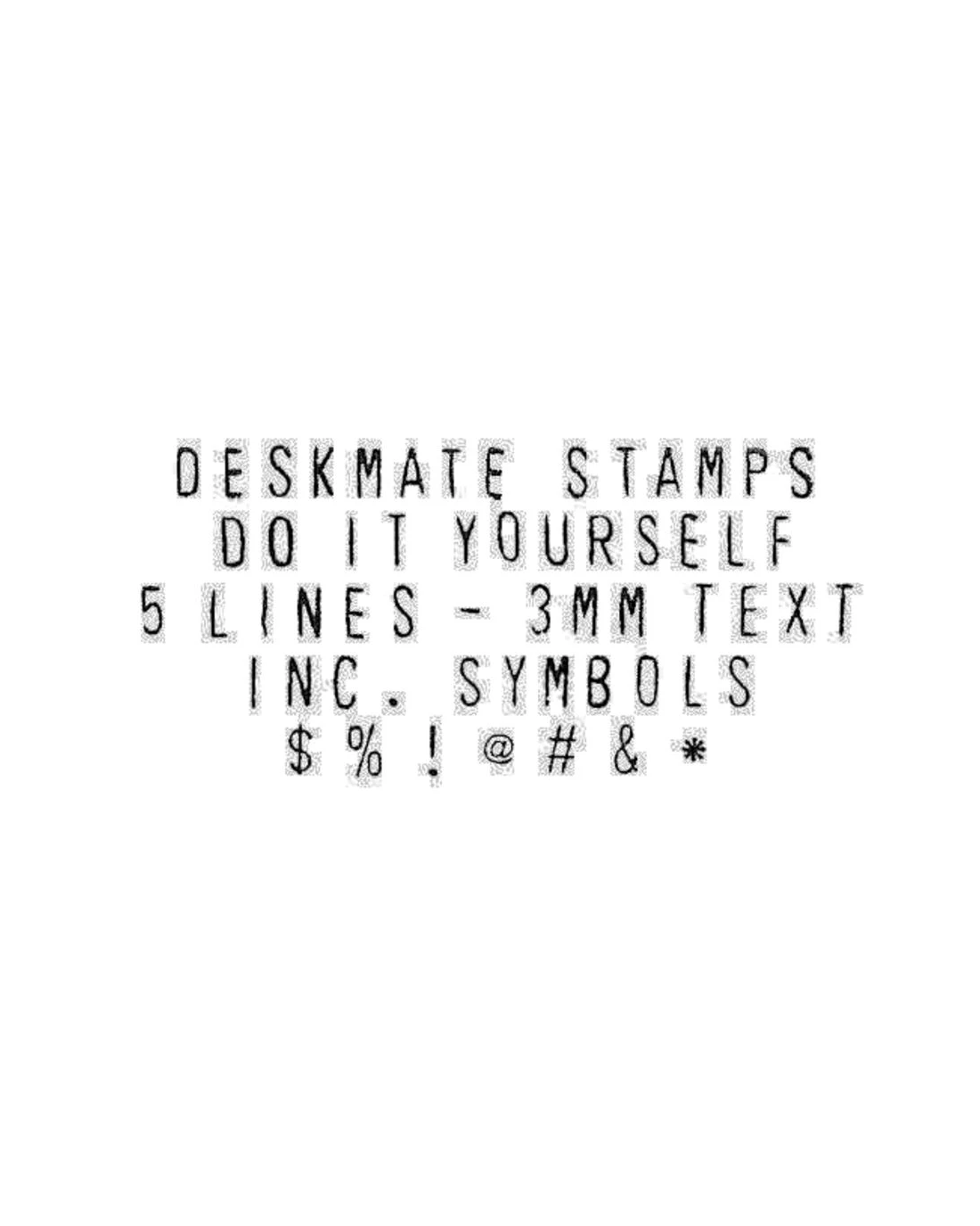 Create the stamp you want with the Deskmate DIY Stamp Kits 5 Lines 3 mm. Personalise this stamp using up to 5 lines of text, with 15 characters per line with 3 mm text. There are uppercase letters, numbers and symbols included in this kit so you can effectively get your messages across.