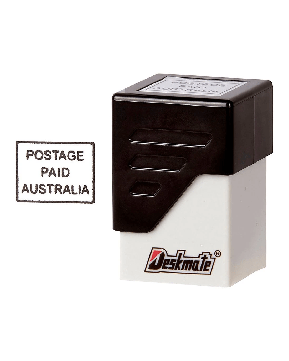 Sold by OfficeworksDeskmate Pre-inked Office Stamp Postage Paid Australia Black