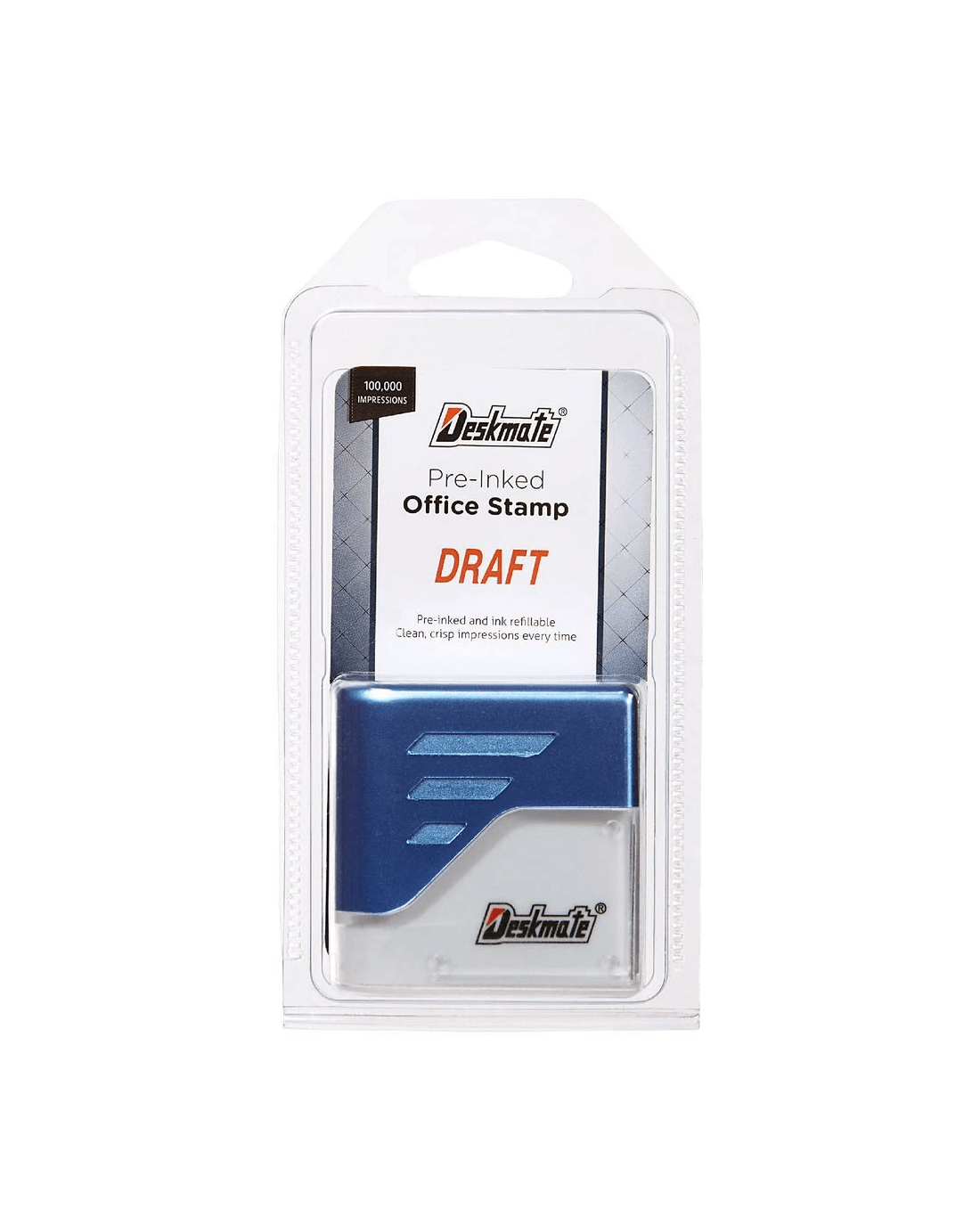 Deskmate Pre-Inked Office Stamps are durable, reliable and suitable for high volume office use. The stamps provide approximately 100,000 sharp impressions and can easily be reinked when necessary.