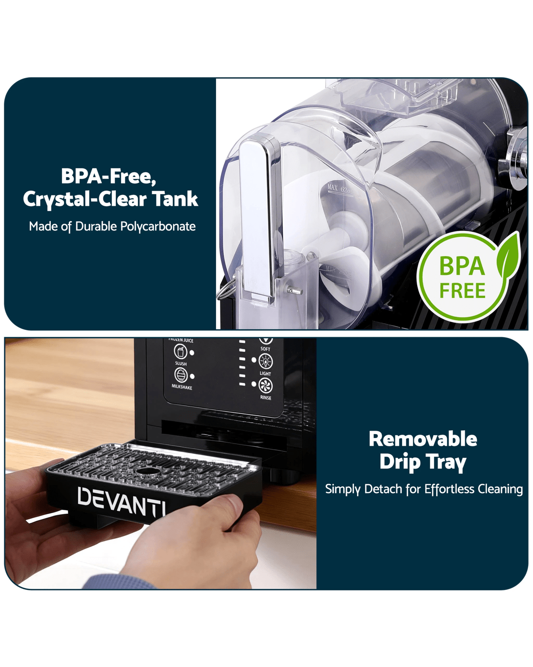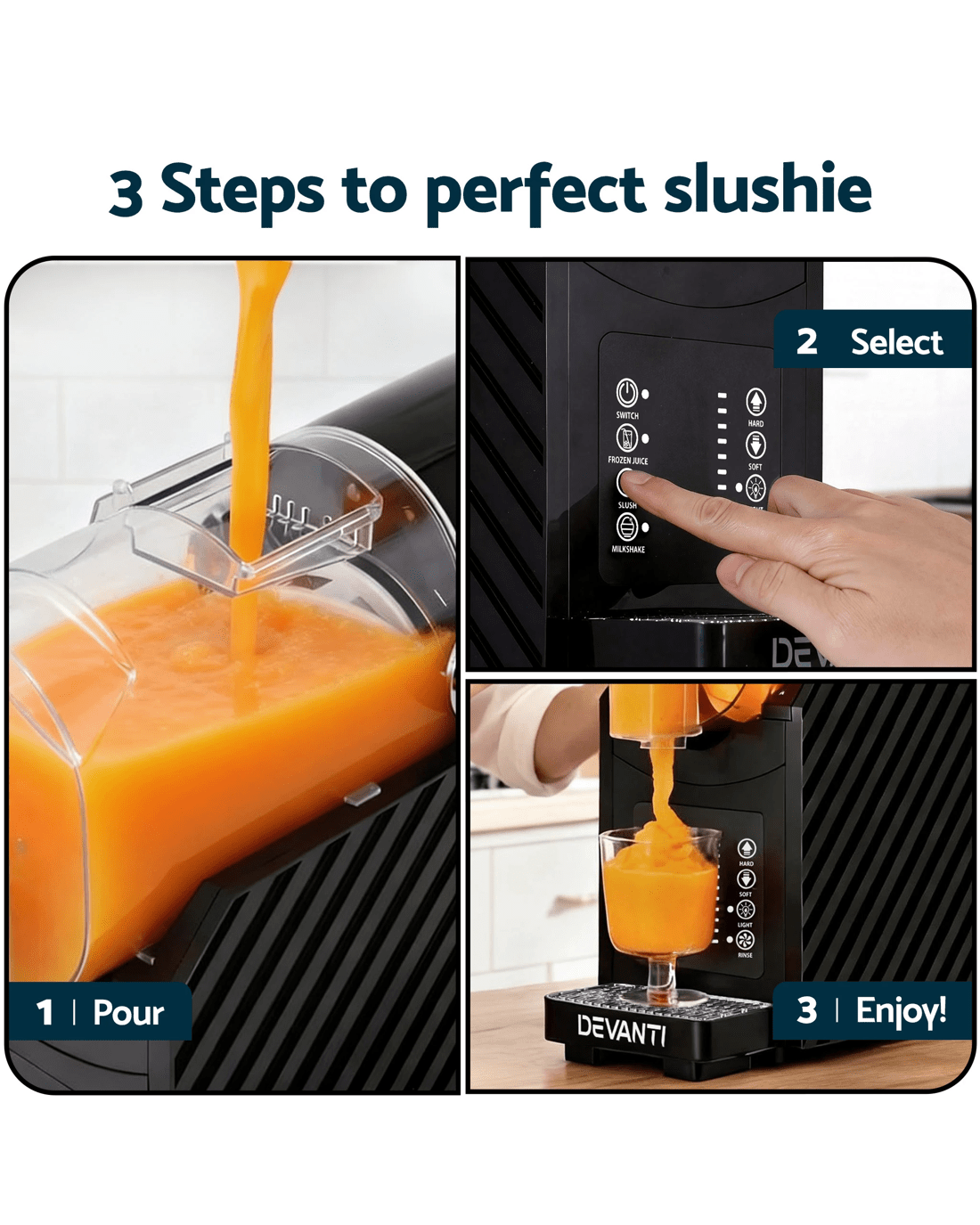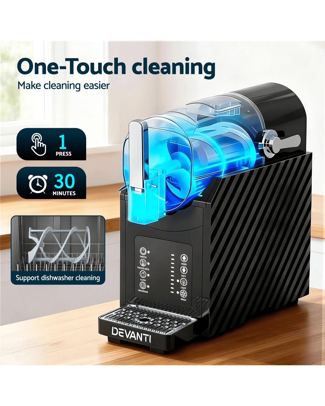 Devanti Slushie Machine Maker churns out serves of smooth-as treats—no pre freezing needed! Ideal for summer scorchers, kids' parties, or a cheeky dessert, it's dead simple to use and a breeze to clean. Just chuck in your ingredients, press go, and you're sorted!