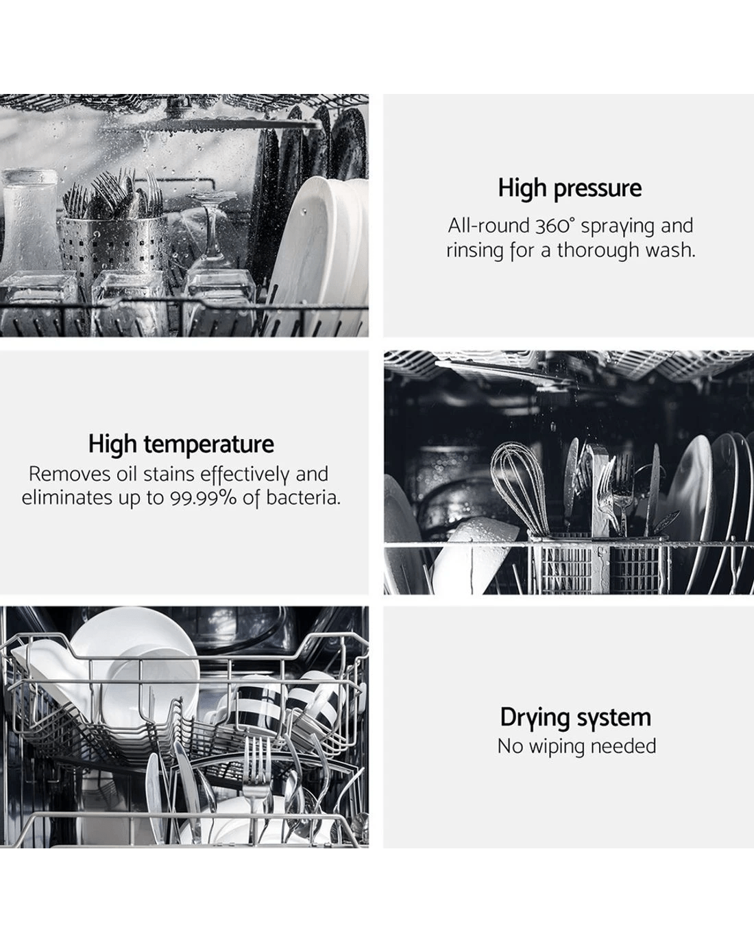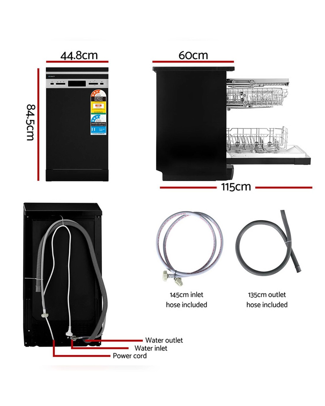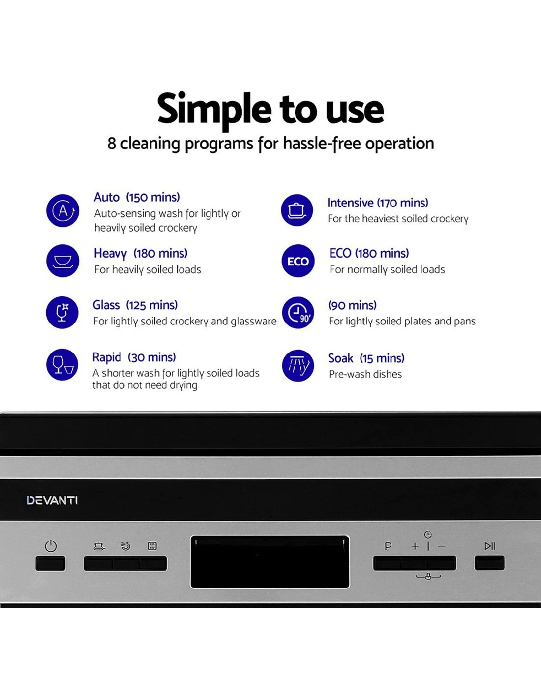 Large capacity, convenient,easy to install, the Devanti Dishwasher is packed with full of great features to make dishwashing a joy rather than a chore.