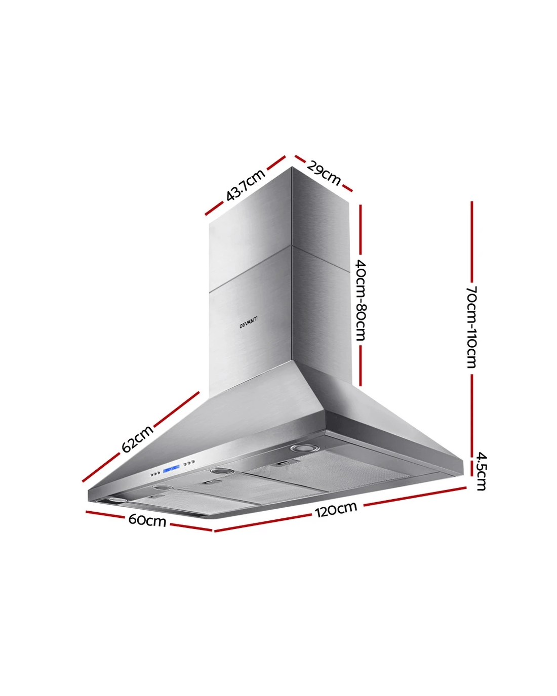 Thick smoke and steam from your cooking. Stifling odours all around. And the hood's not doing its work in clearing the mess. Yes, it's the bane of every conscientious chef who wants the cooking environment to be as pleasant as possible. And that wish has come true with our Devanti 1200mm wall mount range hood.