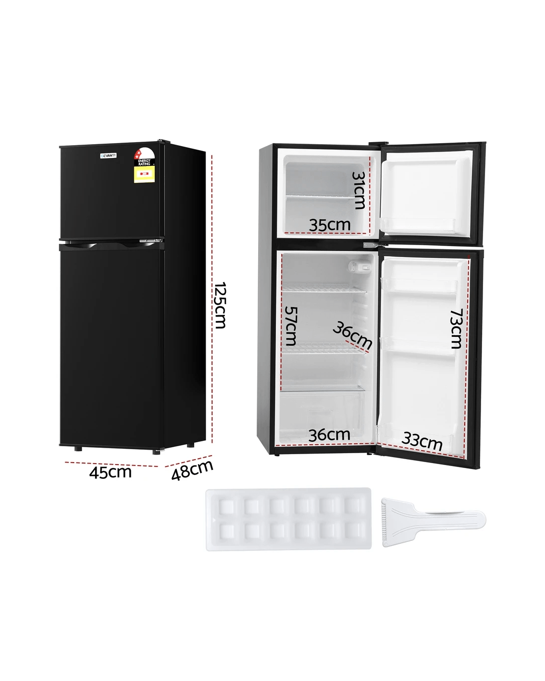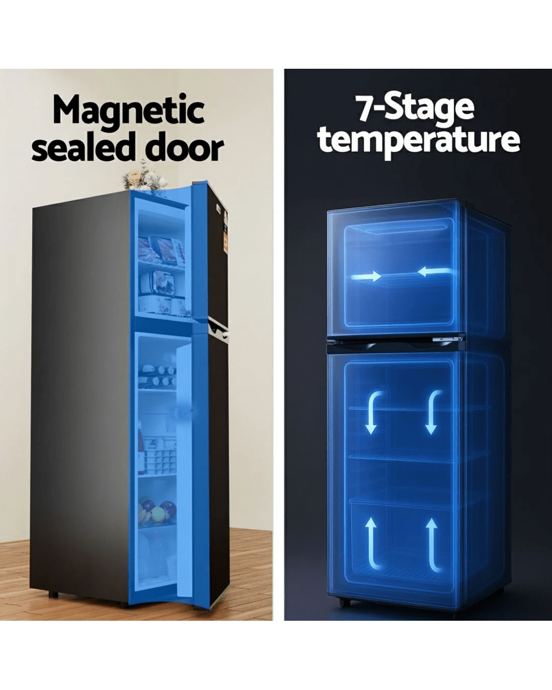 The Devanti 122L Bar Fridge is the perfect compact refrigerator for any space. This freestanding two-door mini fridge features a genuine freezer, perfect for ice and snacks. With 7-stage temperature control and an interior light, it's the ideal bar fridge with freezer for your home, garage or office.
