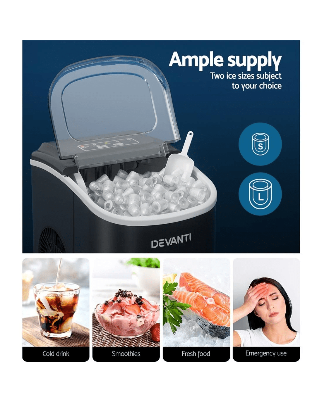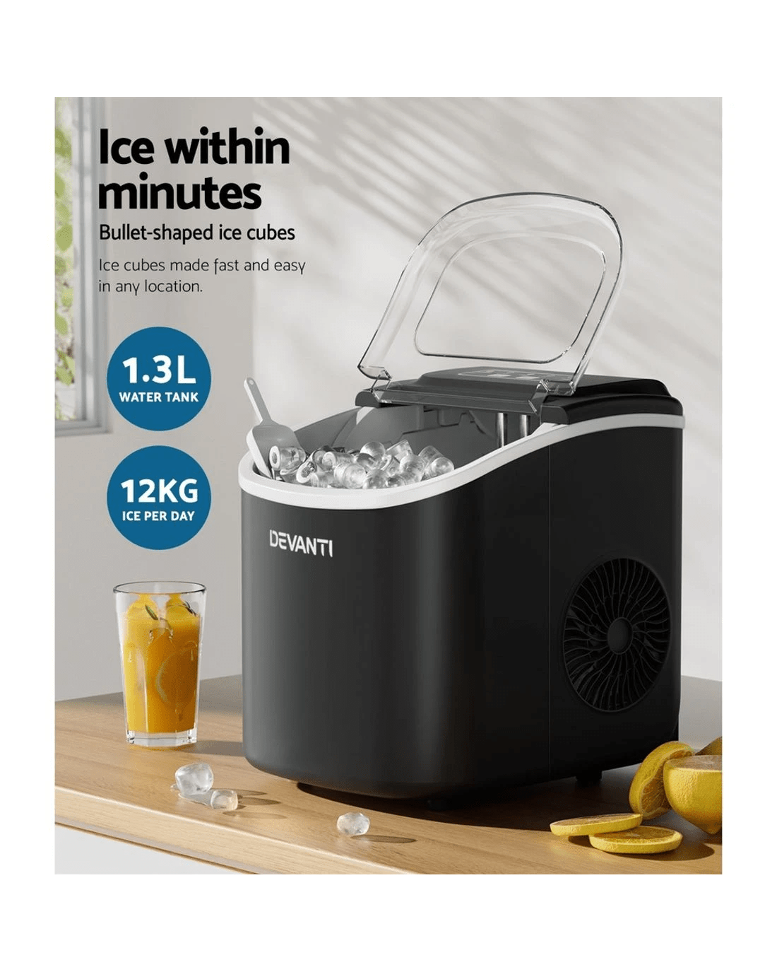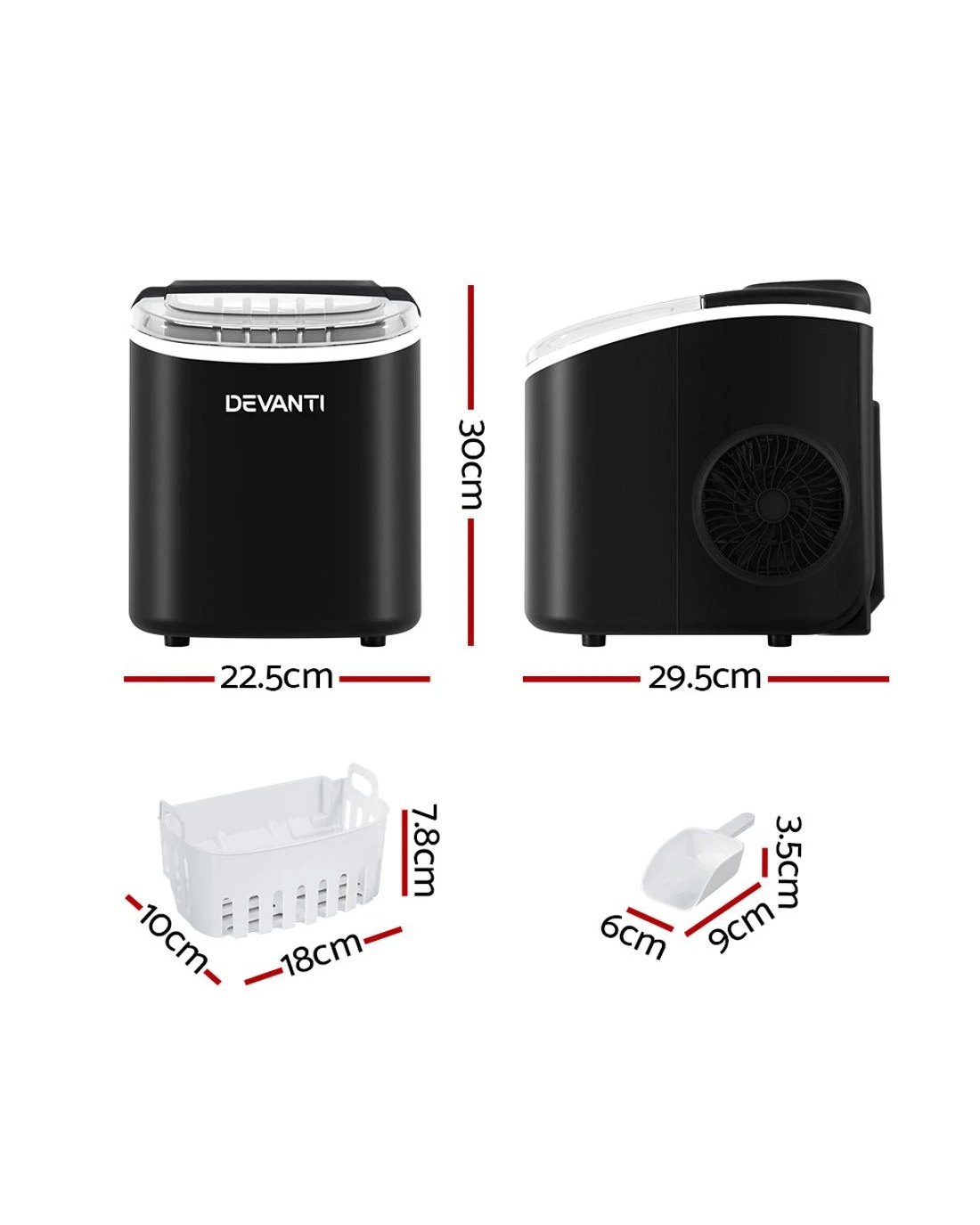 Devanti 12kg Ice Maker Machine w/Self Cleaning - Black