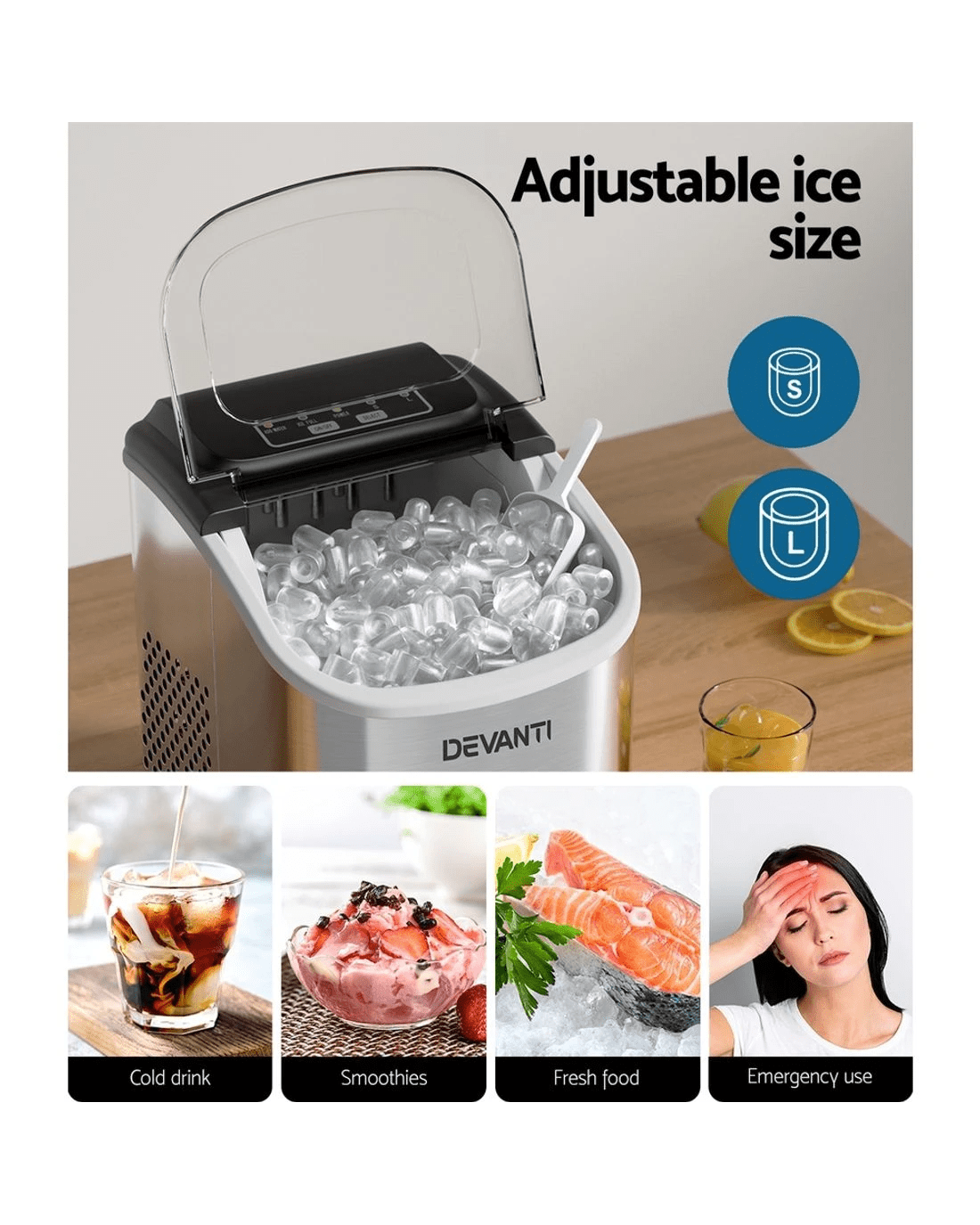 Sold by Aisle SixDevanti 12kg Ice Maker Machine w/Self Cleaning - Silver