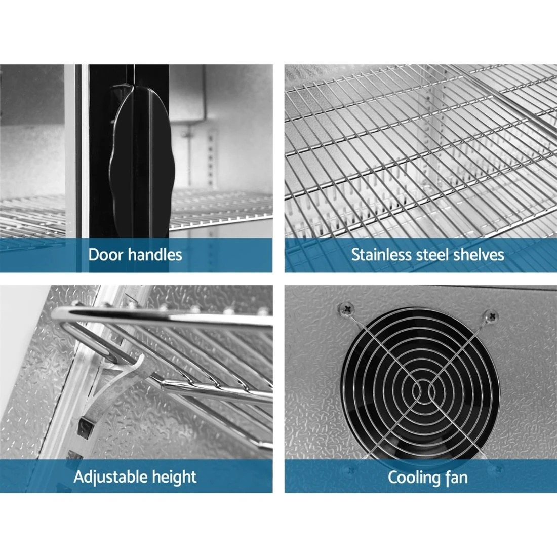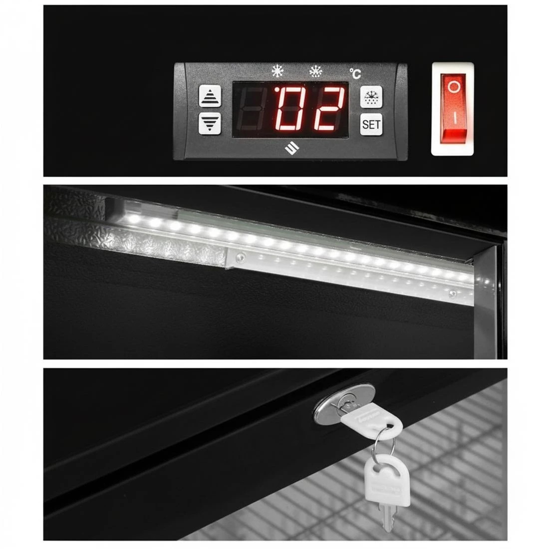Devanti 198L Bar Fridge Dual Glass Door with Light Beverage Adjustable Shelves Quiet Lockable - black