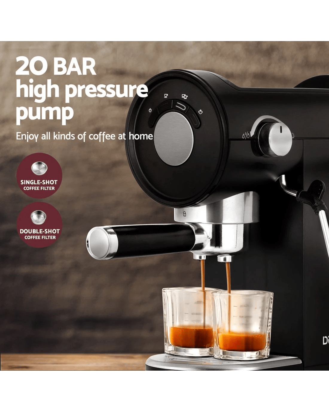 Sold by Aisle SixDevanti 20 Bar Coffee Machine Espresso Cafe Maker - Black