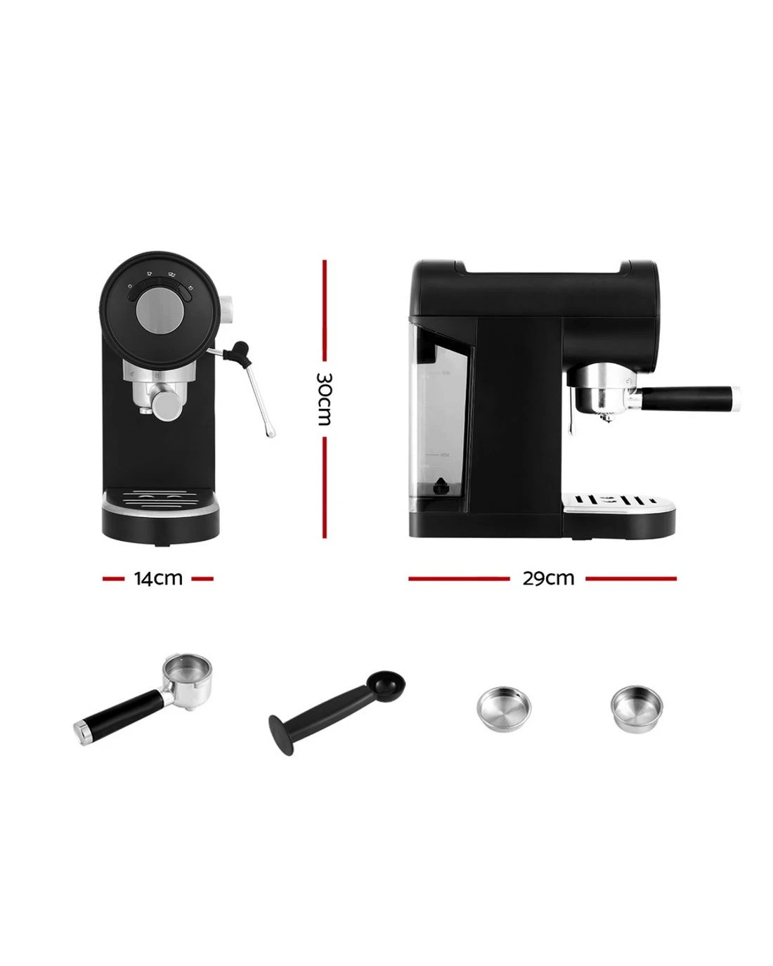 Get a head start on the day with your first cup of coffee from a Devanti Espresso Machine. Pour the perfect shot every time with easy-to-use controls, a powerful 20-bar pressure pump, and an instant heat system. The machine comes with single and double-shot coffee filters, a diecast aluminium portafilter and a dual coffee tamper/spoon - everything you need for a fresh cup. The convenient mug warmer keeps your cups at the perfect temperature as you froth your milk just the way you like it. Easily fill the machine from the removable water tank and clean it with the removable drip tray. Its space-saving design won't take up your entire benchtop, giving you plenty of room for your other kitchen essentials. Relax and enjoy your favourite coffee from the comfort of your home with your very own Devanti Espresso Machine.