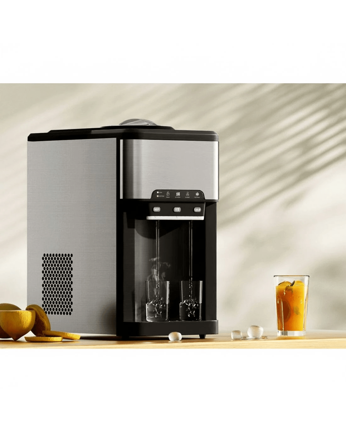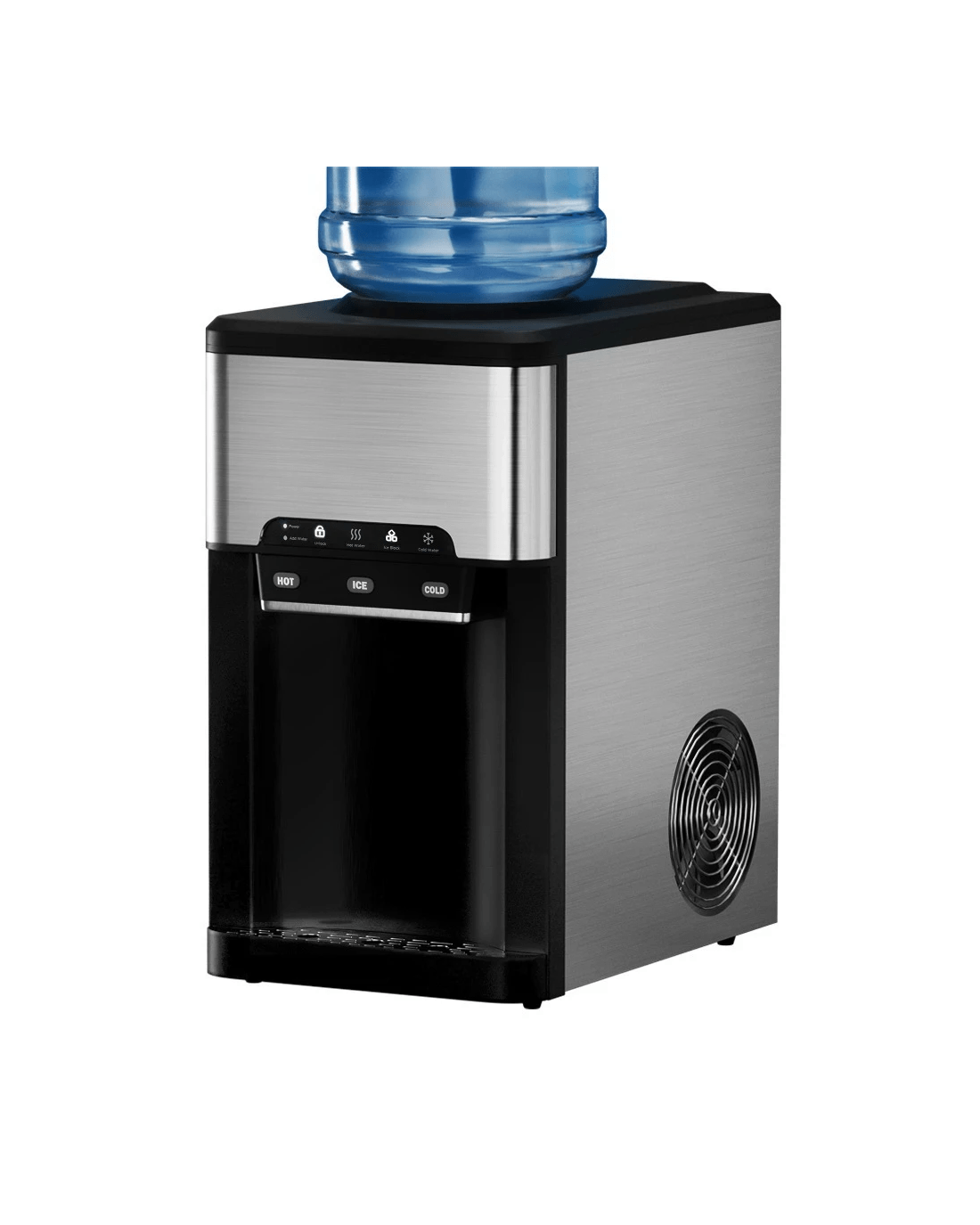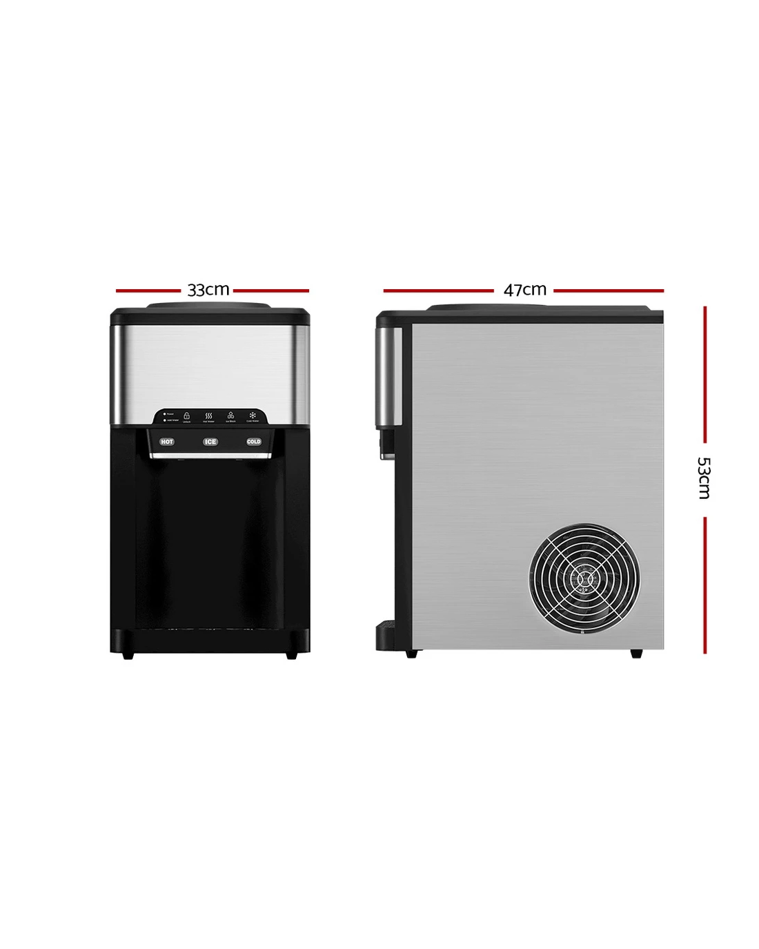 Don't stop the party when the ice runs low. You'll never need to do an ice run again when you have a Devanti 3-in-1 Stainless Steel Ice Maker and Water Dispenser. Save the drinks, save the party! Capable of making 12 ice cubes every 7 minutes, the ice maker can dispense ice, cold water and hot water (up to 90 degrees) on demand. Automatic sensors will let you know when the water level is low. The entire countertop unit comprises a stainless-steel casing for durability and has non-slip feet to keep it firmly in place. The ice maker features a convenient drainage plug, a removable drip tray, a simple control panel and a child safety lock to prevent accidents. Best of all, you can add water manually or via a bottled water supply (sold separately). Keep the drinks flowing with the Devanti 3-in-1 Stainless Steel Ice Maker. Get yours today!