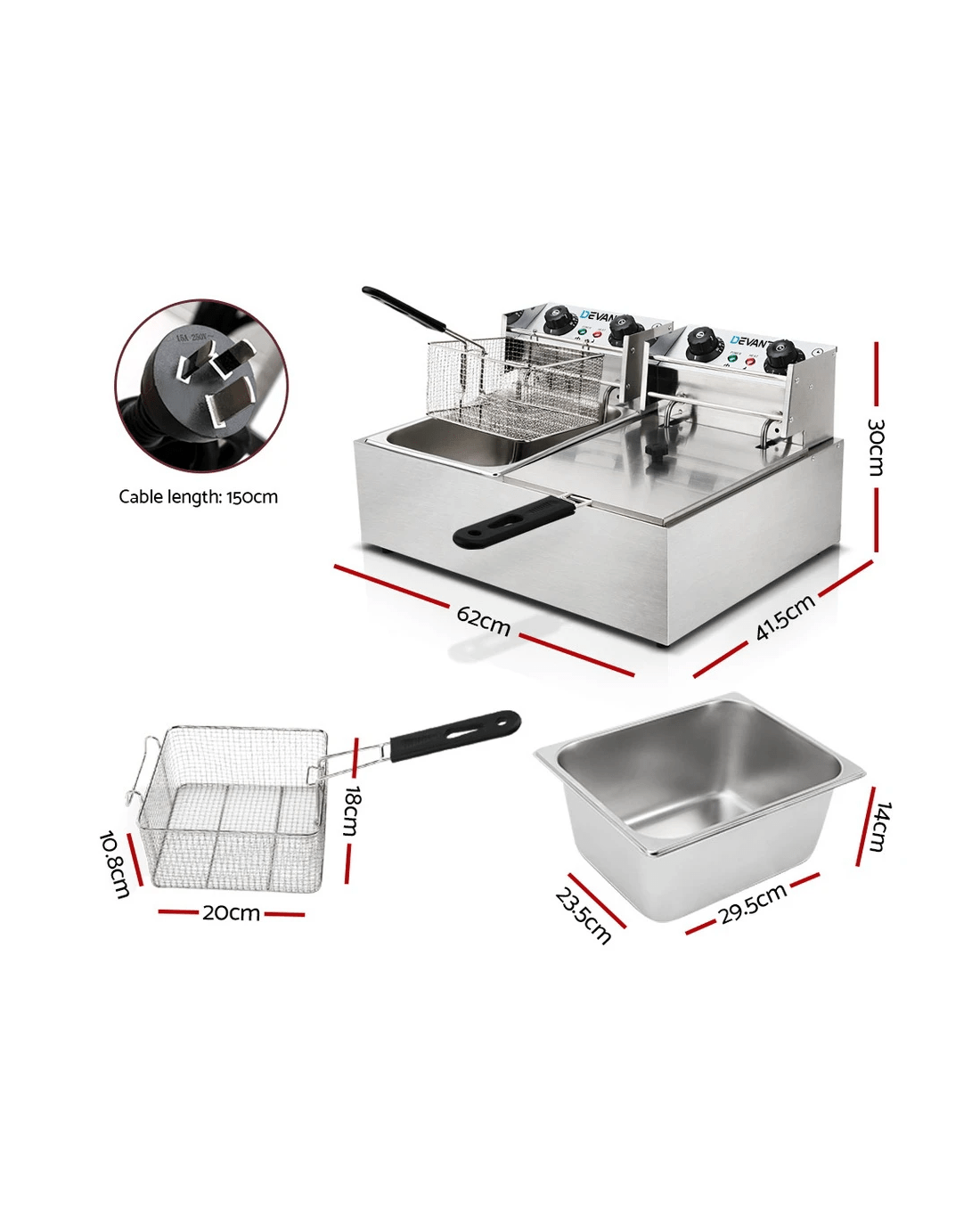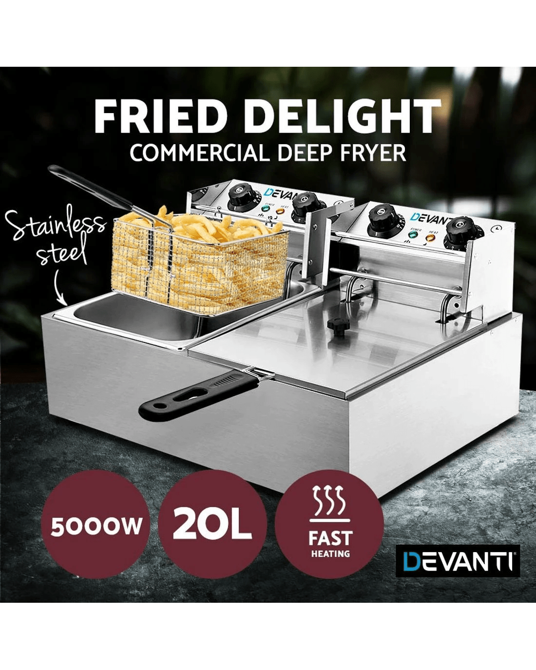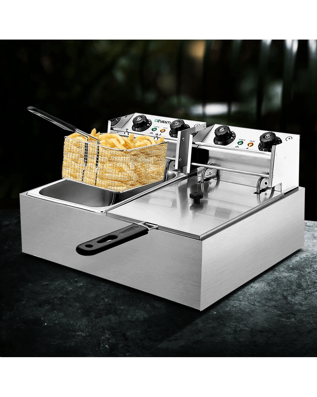 This Premium Devanti commercial deep fryer will lend you a hand with frying your dishes to perfection with the right crisp. Feature packed, including power-saving auto thermostat, hinged removable oil-heating plate, quick-heat function and non-slip rubber feet, this is the perfect chef anyone would love to have in their kitchen.