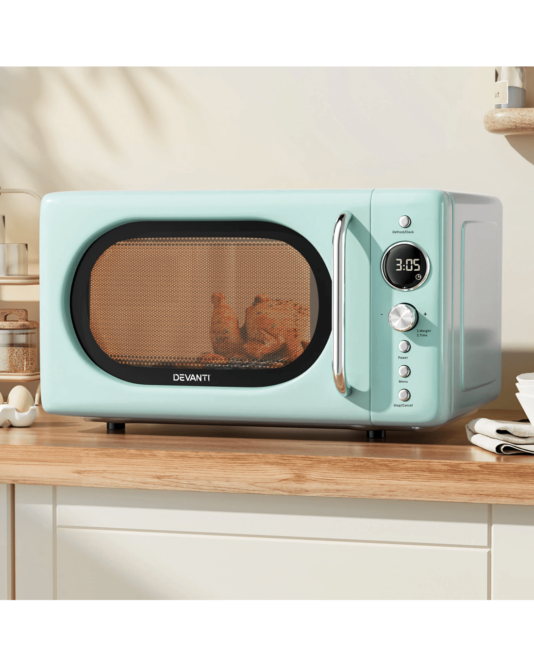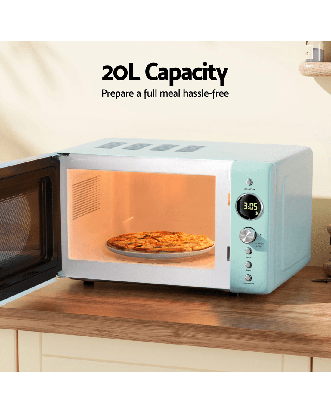 The Devanti 20L Microwave Oven is designed to bring convenience and efficiency to your kitchen. This microwave combines functionality with a modern aesthetic. Equipped with a 24-hour timer, it allows you to set cooking times with precision, while the one-touch express cooking function ensures quick and easy meal preparation. With Six power levels and eight auto cooking menus, this microwave is versatile enough for a range of dishes, from reheating to defrosting.