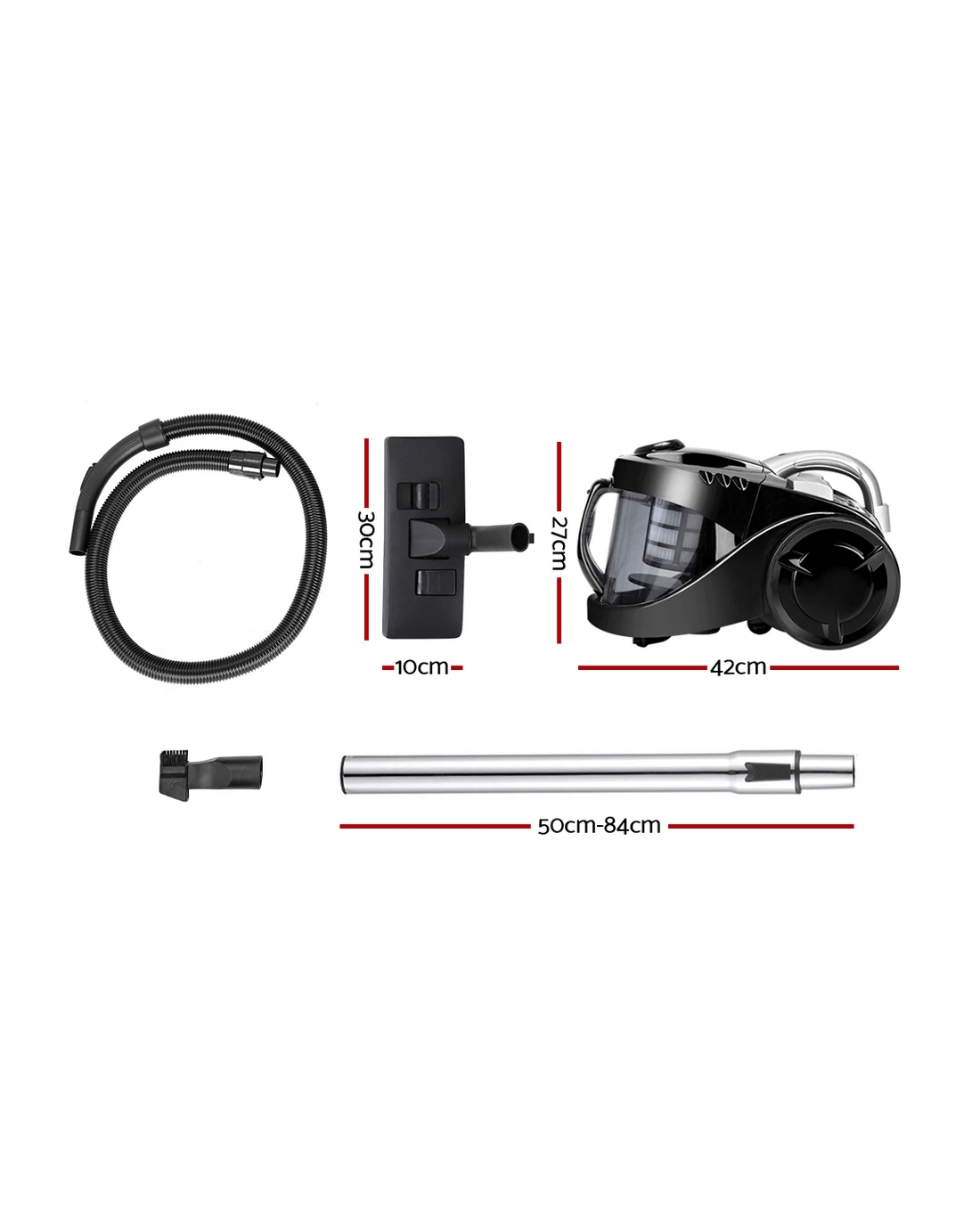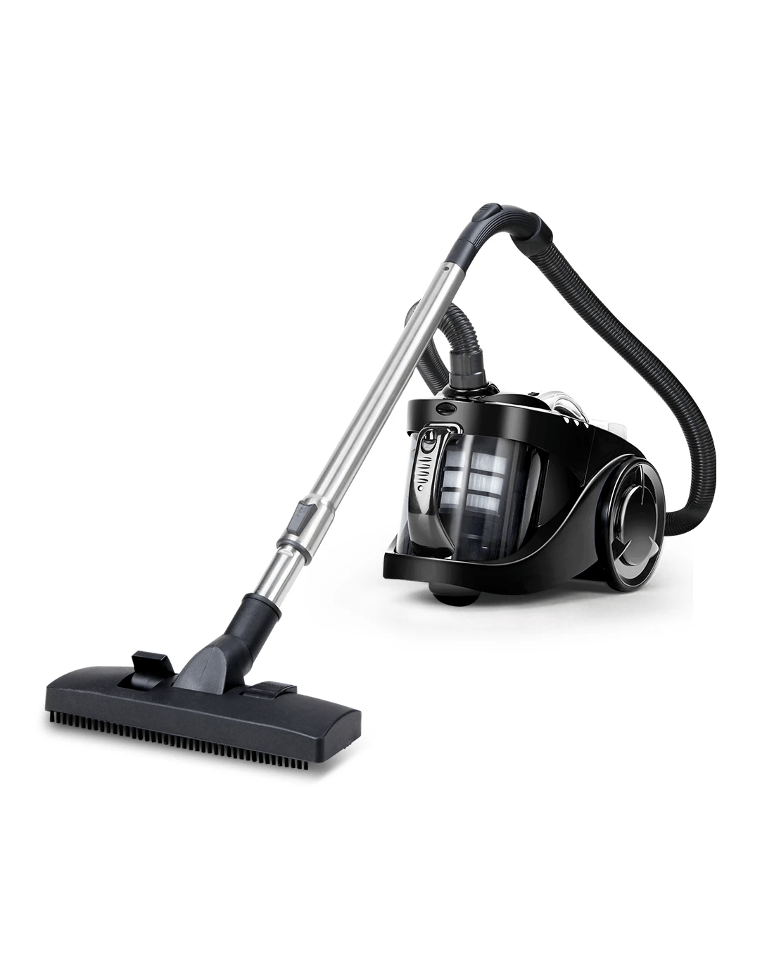 The convenience of bagless vacuuming with the power of effortless cleaning. Such is the Devanti Bagless Vacuum Cleaner that makes light work of even the toughest cleaning tasks. With its 2200W suction power, the vacuum cleaner utilizes a multi-cyclonic system that separates large debris from fine dust. The dust is filtered through a HEPA filter that eliminates up to 99.97% of allergens. Clearing the dust is an easy matter of pressing the release button to remove the lid and dust container and pouring the contents away. The HEPA filter is also washable and reusable. The vacuum cleaner comes with a retractable cord for easy mobility, a 360° rotatable hose and a telescopic stainless steel handle that can be fitted with different heads included in the accessories pack.