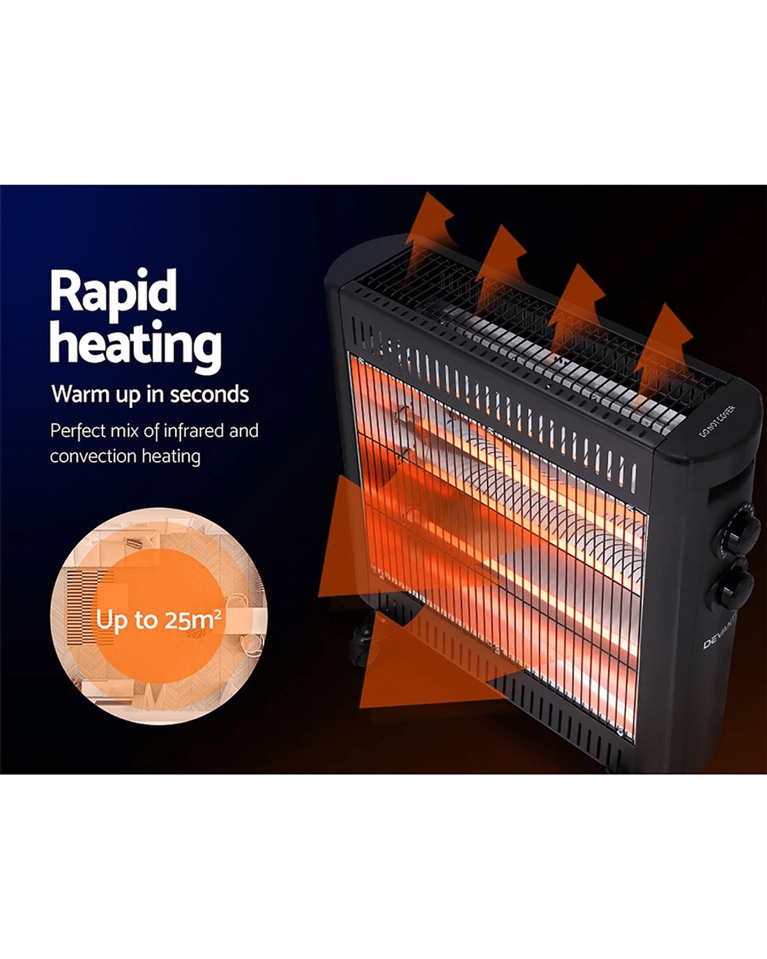 Heating range: Up to 25m2