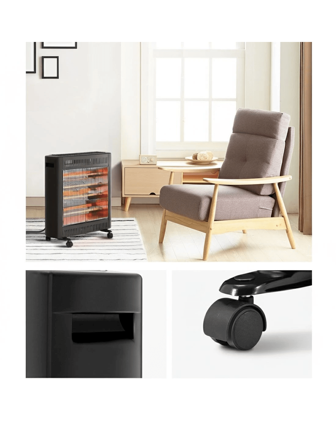 Just like the way that the sun heats up the earth, the Devanti Infrared Heater works in a similar fashion to provide soothing sun-like warmth with its reflective heating technology. With our infrared heater, there are no odours, fumes or carbon dioxide emissions and up to 95% of the energy generated is converted to useful heat. This is because infrared heating warms up the object and not the air around it. With its more targeted and rapid heat build up, the eco-friendly heater is certainly more energy efficient and cost effective in every way. It also features an adjustable thermostat to suit your heating requirements with its four high-quality quartz heating elements. And with no moving parts, the Heater Panel works silently and is virtually maintenance-free. Not least, the highly portable infrared heater is fitted with wheel castors for easy mobility and built-in handles to assist with hassle-free movement.