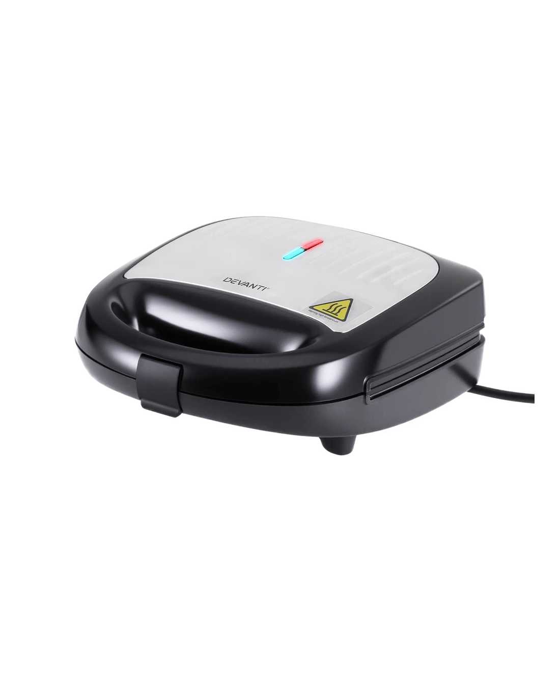 Start your mornings right with the Devanti 3-in-1 Sandwich Maker, a versatile appliance designed to prepare delicious meals in minutes. This multifunctional unit works as a sandwich maker, waffle maker, and panini press, giving you more options without cluttering your kitchen. Equipped with an 850W high power heating system, it heats up quickly and ensures fast, even cooking. The double grill plate and double-sided baking design deliver crispy sandwiches, golden waffles, and grilled beef or sausage every time.