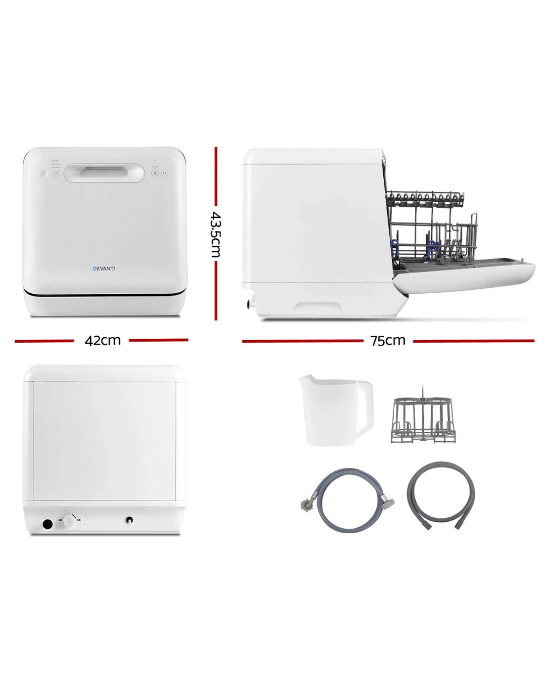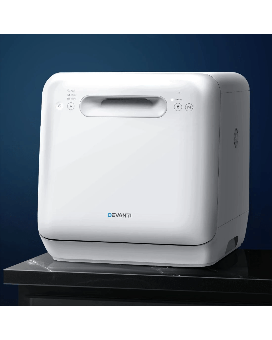 Just like its full-size built-in cousin, the Devanti Benchtop Dishwasher is packed with extraordinary cleaning prowess too. With its convenient LED indicator light and touch controls, operating the dishwasher is hassle-free with up to six washing programmes to choose from. Each programme ensures a thorough 3600 wash with powerful sprays from top to bottom to remove every bit of dirt and food particles. Better still, it is also designed to clean baby bottles and toys safely and hygienically. The dishwasher also enables you to add water in two ways, with a top intake that lets you add water manually without any need for piped water connections. Not least, the automatic ventilation system keeps your washed dishes and utensils clean and dry for up to 72 hours. With many more great features too long to list here, our benchtop dishwasher is certainly the top choice for you when it comes to convenient and effortless dishwashing.