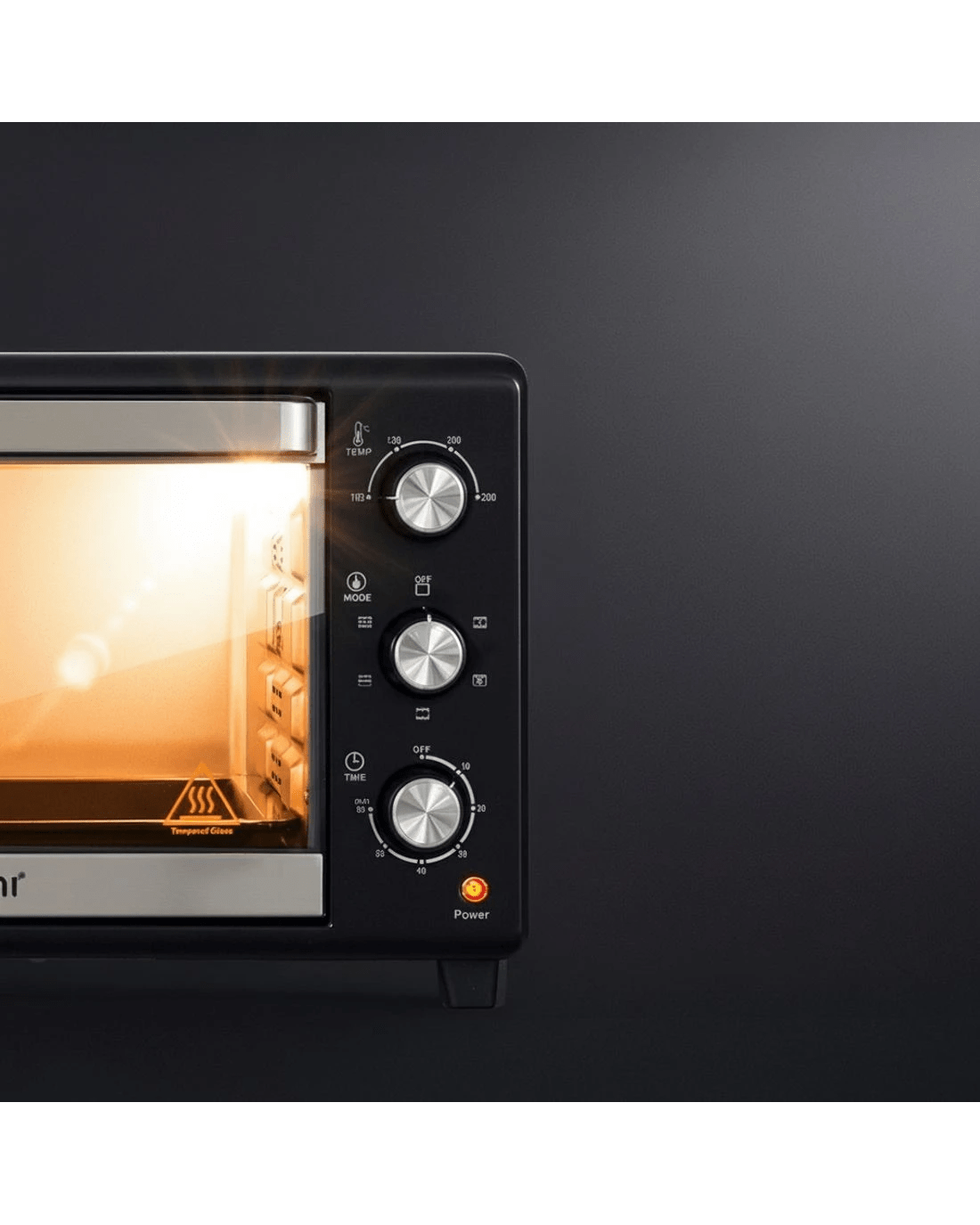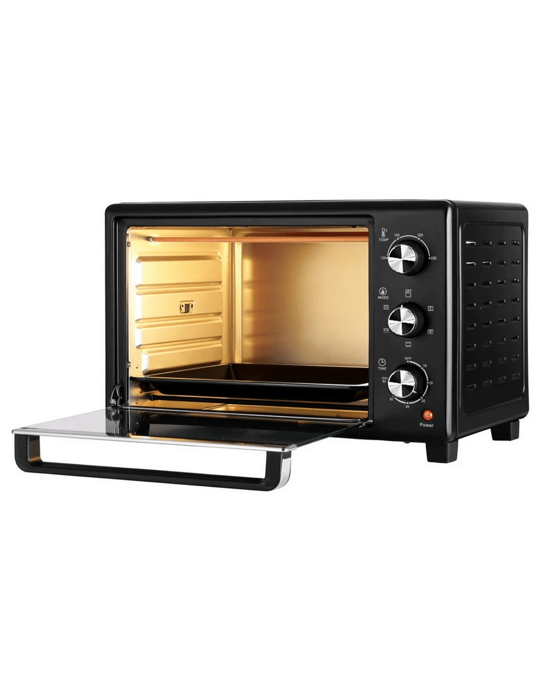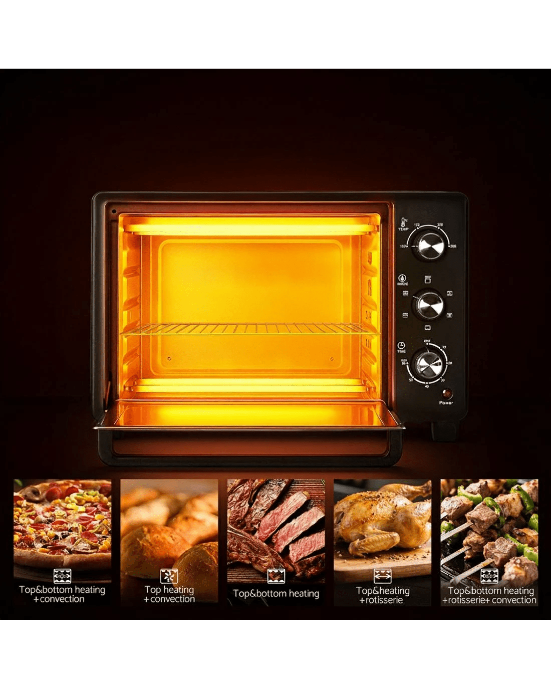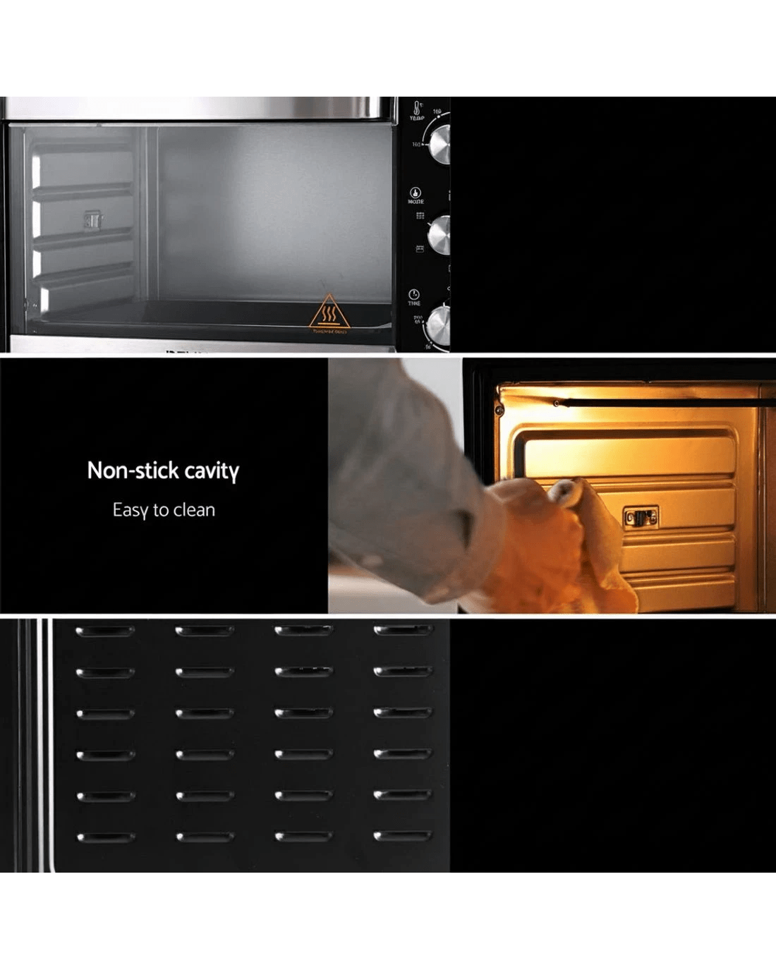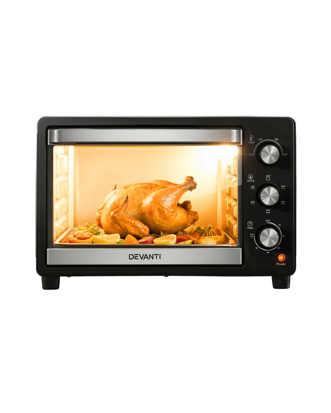 The Devanti 30L Convection Oven is the perfect solution for compact kitchens or as an extra cooking option. With 4 stainless steel heating elements and a 6-stage function switch, it lets you bake, grill and roast with ease. Features include 100~250°C temperature control, 60-min timer with auto shut-off, built-in light, tempered glass viewing door, and cool-touch handle. Designed with non-stick pan, 4 tray positions, heatshield vent and non-slip feet, it's safe, versatile and easy to clean.