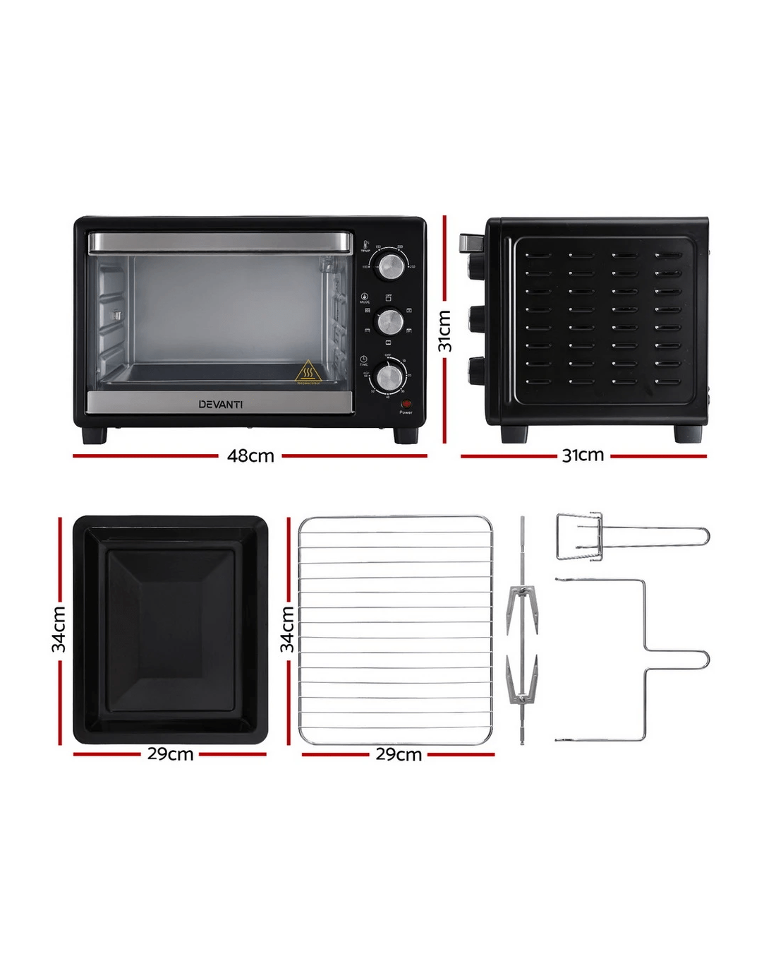 Sold by Aisle SixDevanti 30L Convection Oven Electric Fryer Ovens 1600W - Black