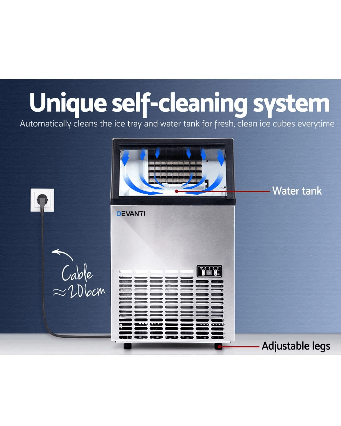 Sold by Aisle SixDevanti 45-60kg Commercial Ice Maker Machine - Black