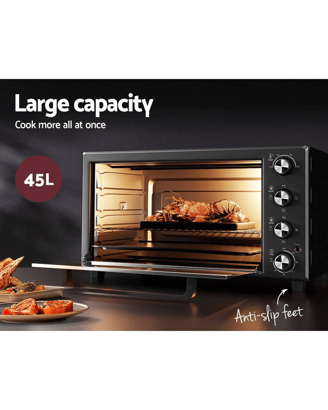 Devanti 45L Convection Oven Electric Fryer Ovens 1800W - Black