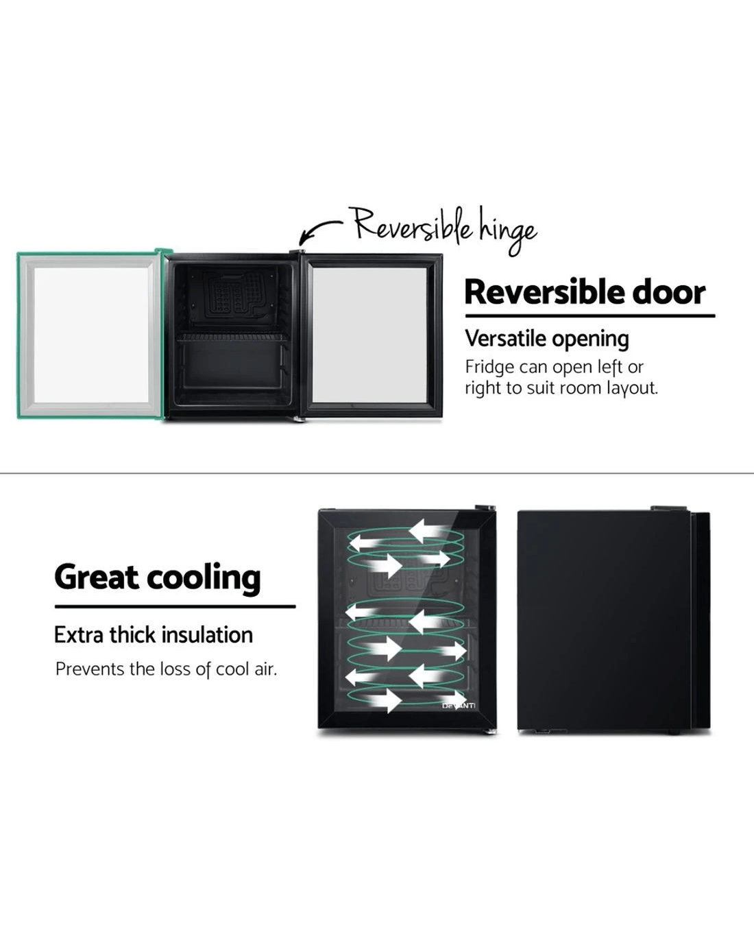 Sold by Aisle SixDevanti 46L Bar Fridge Glass Door - Black