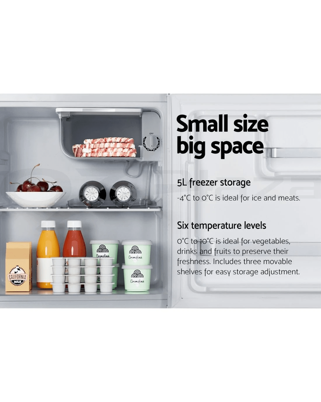 Suitable for your caravan, apartment, work kitchen or holiday house, this handy mini bar fridge is great for accommodating a variety of food and beverages with chill compartment and door compartment for storing drinks and sauces. Conveniently used as a second fridge or mobile refrigerator as well.