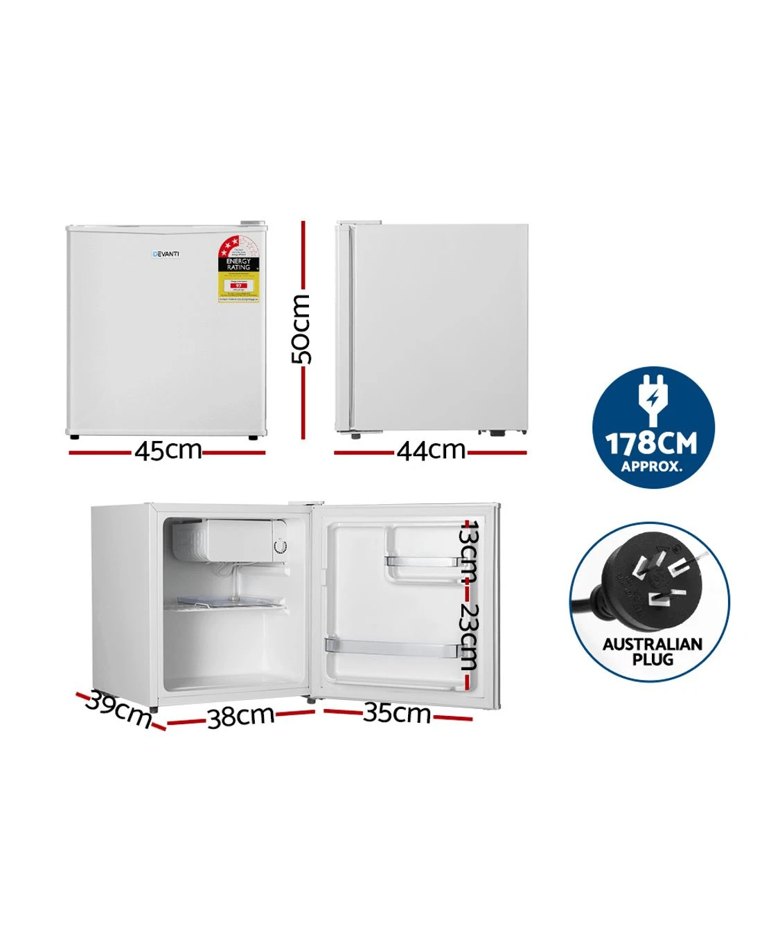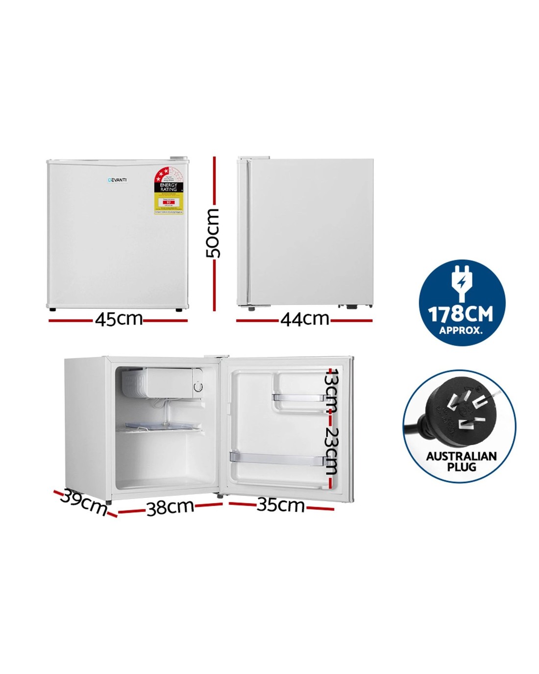 This Devanti fridge uses the R600A refrigerant and freon-free; a greener option for the environment with a shorter life in the atmosphere and less impact on global warming.