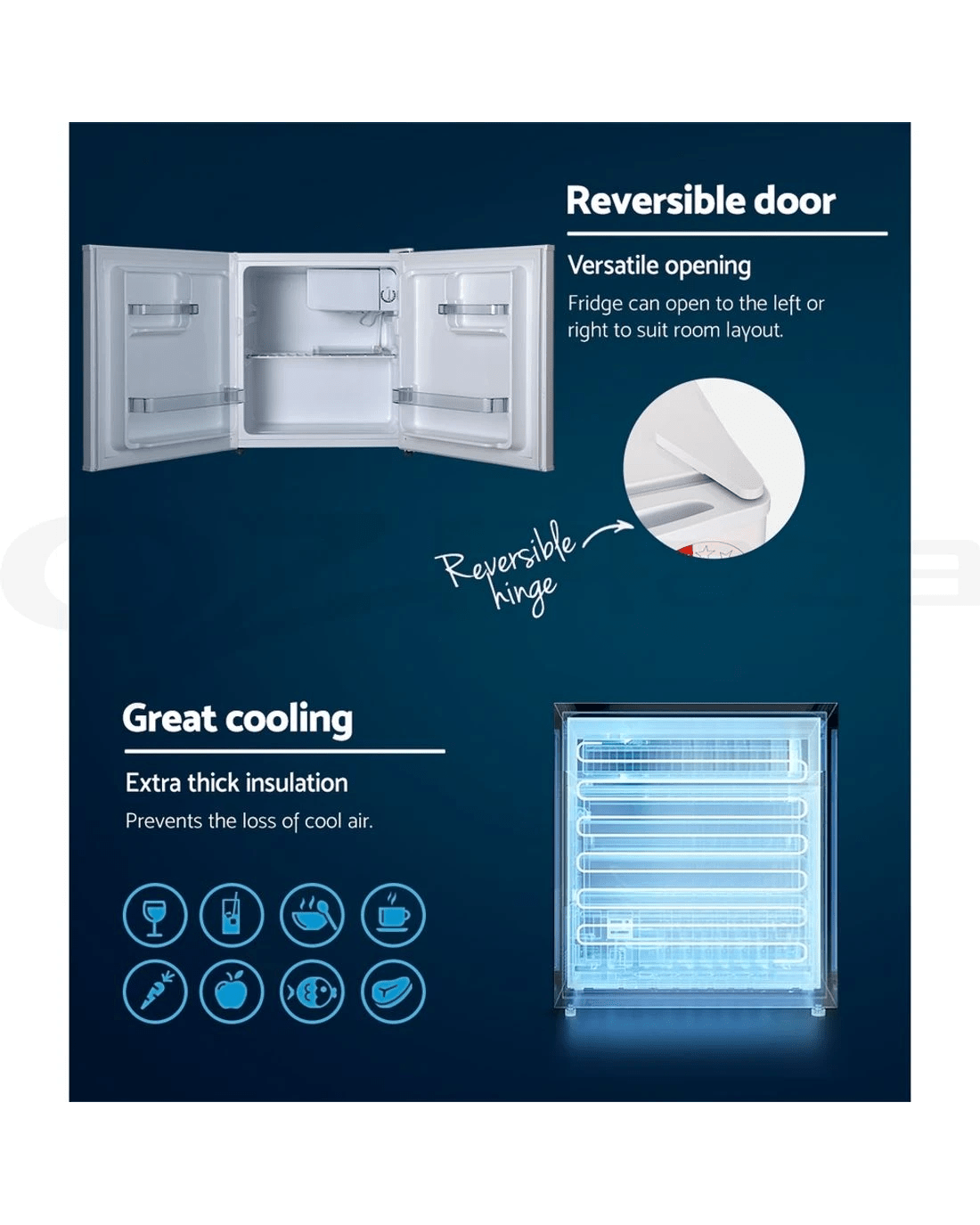 Offering at a low and affordable price, Devanti mini bar fridge is the ideal unit for smaller spaces or an extra surface-top refrigerator. Purchase now for a great investment, a great addition for bar areas, cocktail bars, catering or a mini bar in hotel rooms.