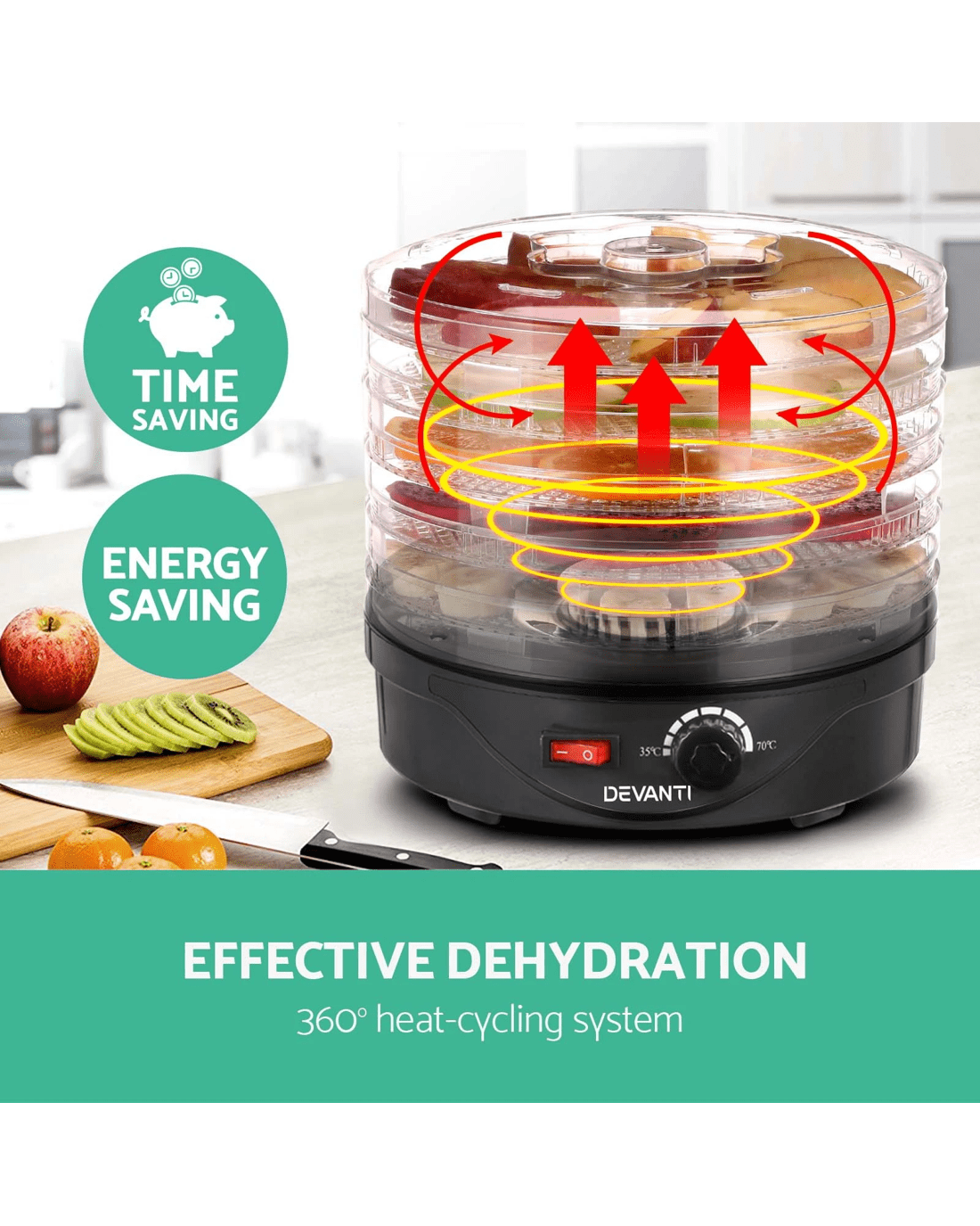 Making your favourite healthy dried foods is so easy with the Devanti 5-tray Food Dehydrator.