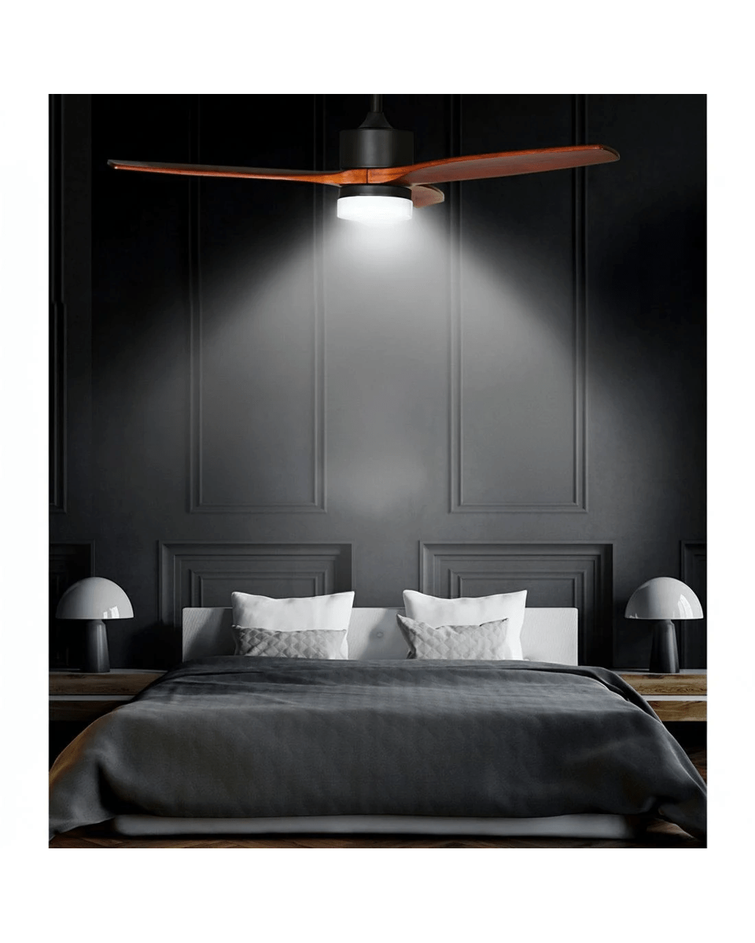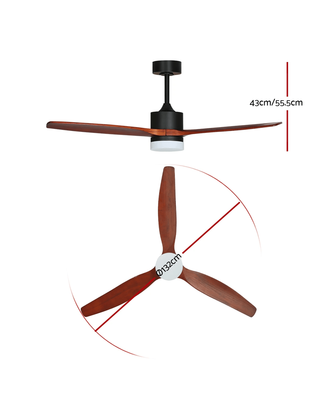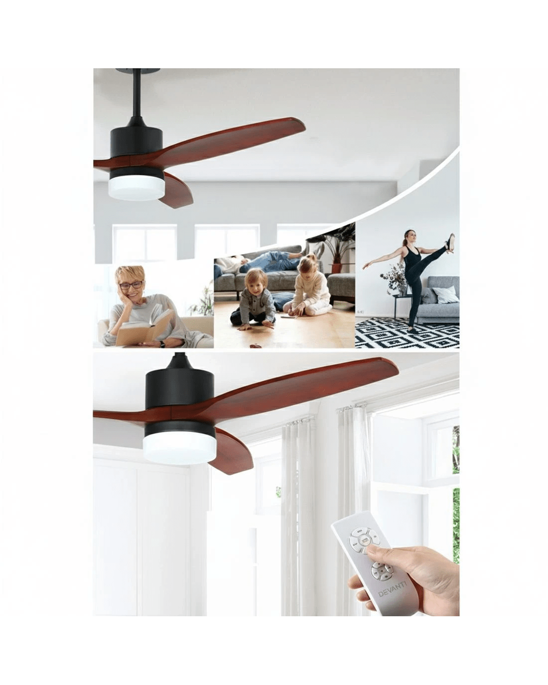 Devanti 52'' Ceiling Fan AC Motor 3 Blades w/Light - Dark Wood - Brown