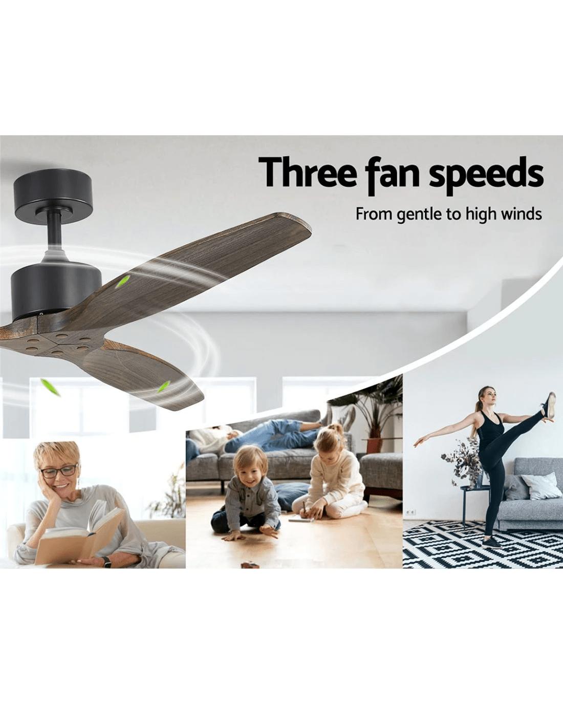 Gentle breezes, light drafts or high winds, our 52" Wooden Ceiling Fan is ever ready to meet your requirements easily. With six fan speeds, the contemporary-design ceiling fan features an efficient DC motor that provides ample air circulation and cool breezes throughout the room. Its four high-quality wooden blades are simply stylish and make for a unique presence. Plus, its energy-efficient 35W motor operates ever so quietly and an 8-hr timer also allows you to preset the fan to start and stop at your desired timing. The ceiling fan also comes with all the accessories for an easy installation including a handy remote control for hassle-free use.