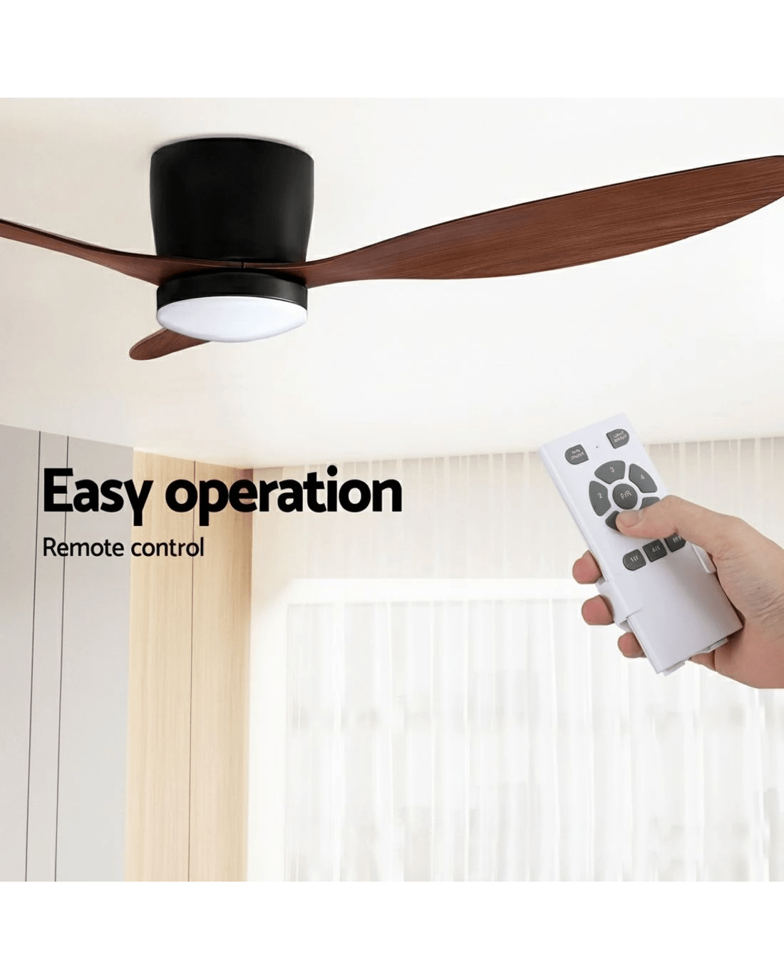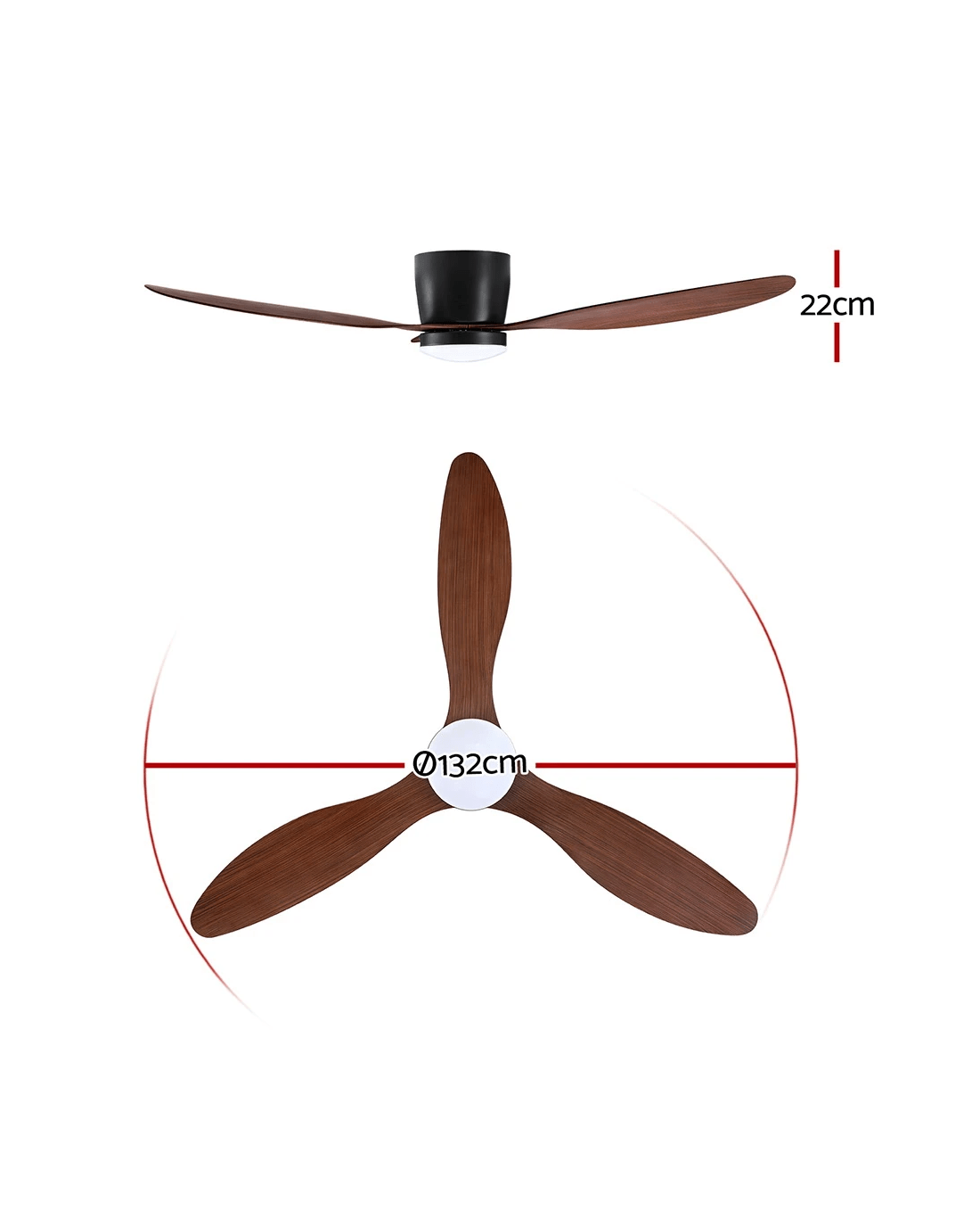 Don't let the summer heat spoil your day. With the Devanti 52"Ceiling Fan, you can enjoy the cooling power of circulating air all year round, from gentle breezes to high winds. The fan features an efficient DC motor that delivers 5 different fan speeds to encourage circulation and spread cool air throughout the room. A reverse-cycle motor allows you to blow cool air downward during summer and maximise your AC efficiency, or draw up warmer air during winter. The three high-quality blades are not only stylish but incredibly quiet, allowing you to use it at any time of day or night. A built-in LED light with 3 colour lighting choices will help you set the perfect mood. With an 8-hour timer and remote control, you have total control over your home climate. Best of all, the fan can be used both indoors or under cover outdoors, so you can find cool breezes wherever you go. Beat the summer heat with a Devanti 52"Ceiling Fan – order yours today.