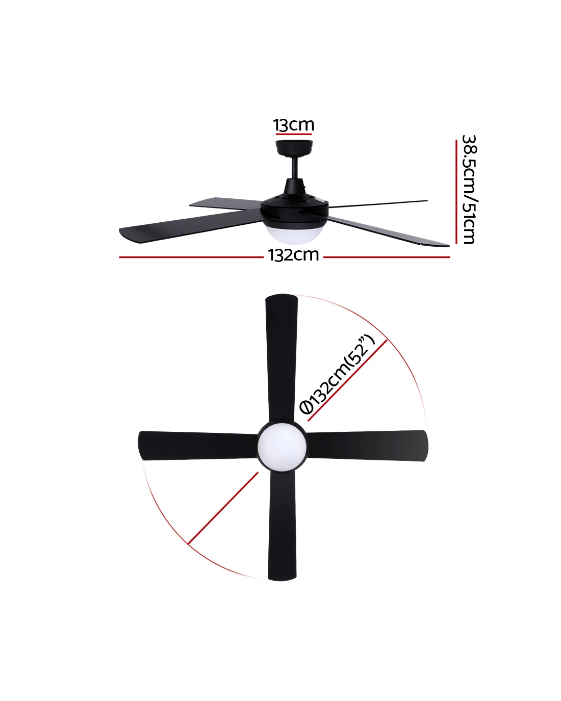 Fan size: 52-inch