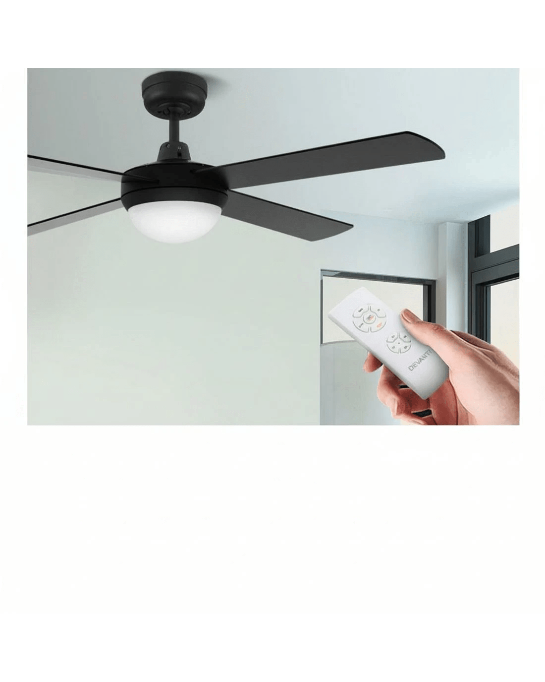 Gentle breezes, light drafts or high winds, the Devanti 52" Ceiling Fan is ever ready to meet your requirements easily. With six fan speeds, the contemporary-design ceiling fan also has a reverse cycle motor that can create downdrafts during summer or updrafts during winter for greater comfort. Its four high-quality wooden blades are pitched at an airflow-inducing 12 degree for more effective wind creation. Plus, its energy-efficient 35W motor operates ever so quietly. Also featured is built-in memory-enabled LED lighting that can bring on a cool white, warm white or neutral lighting ambience to go with the fanning function. Better still, the fan can be set for up to 8 hours of timed operation and the handy remote control makes this fan a breeze to use from anywhere in the room. The ceiling fan also comes with all the accessories for an easy installation including an extension rod. Available in black, white or silver colour to match your decoration easily.