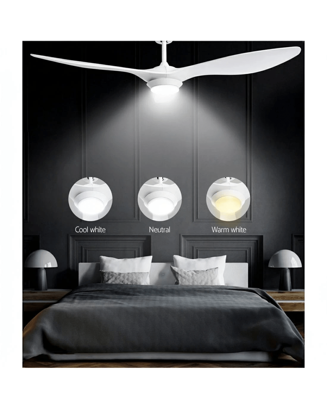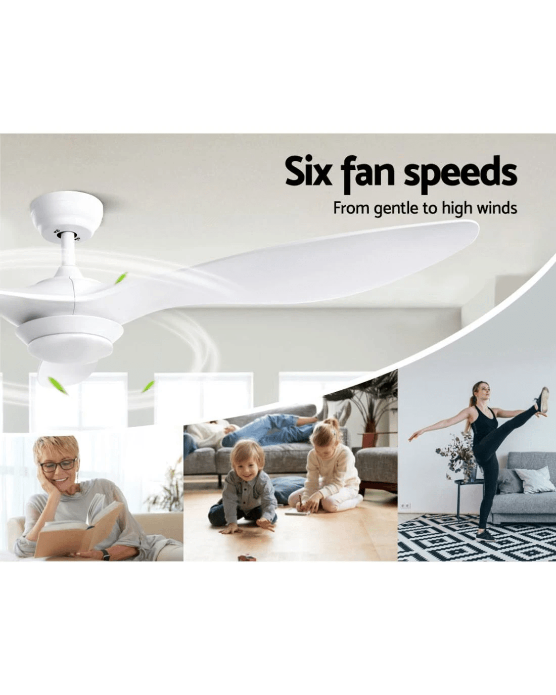 Gentle breezes, light drafts or high winds, our Ceiling Fan is ever ready to meet your requirements easily. With six fan speeds, the contemporary-design ceiling fan features an efficient DC motor that provides ample air circulation and cool breezes throughout the room. Better still, the fan also comes with a reverse cycle mode that can be used for both summer and winter with its smart wind drafts. Plus, the built-in LED light provides ample lighting with three colour choices: warm white, neutral and cool white, to suit your ambient mood. Not least, its energy-efficient 40W motor operates ever so quietly and an 8-hr timer also allows you to preset the fan to start and stop at your desired timing. The ceiling fan also comes with all the accessories for an easy installation including a handy remote control for hassle-free use.