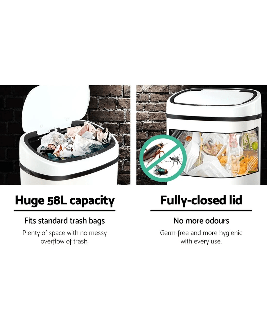 Sold by Aisle SixDevanti 58L Motion Sensor Bin Rubbish Automatic - White