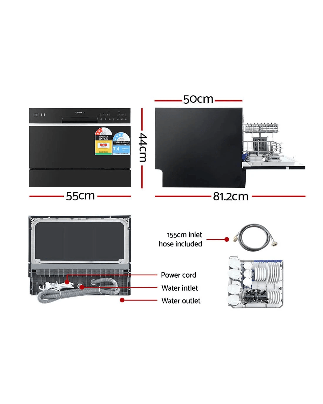 Sold by Aisle SixDevanti 6 Place Settings Benchtop Dishwasher - Black