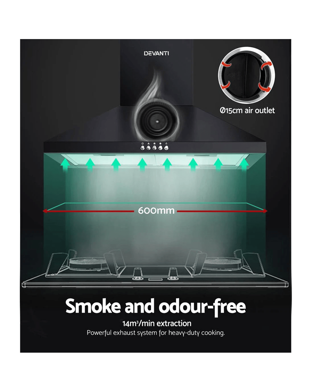 Sold by Aisle SixDevanti 600mm Range Hood 60cm Rangehood - Black