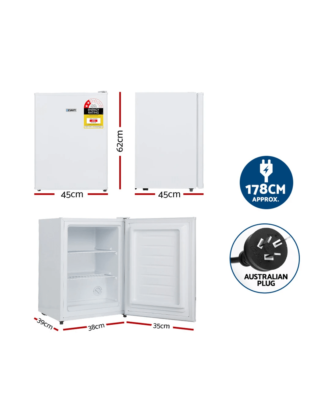 Suitable for your caravan, apartment, work kitchen or holiday house, the Devanti Upright Freezer is great for keeping your goods fresh and frozen. Designed with 3 adjustable temperature levels and fast freezing technology, you can choose how cold to keep your fruits, vegetables, meats and other frozen goods. Made with a PVC door seal gasket, the freezer ensures your food stays cold while closed. The fridge uses freon-free refrigerant, making it a greener option for the environment with a shorter life in the atmosphere and less impact on global warming. The freezer operates quietly and at low power consumption, and its portable design makes it a great addition for bar areas, cocktail bars, catering or a mini bar in hotel rooms. Buy yours today and experience cool, crisp frozen foods anytime, anywhere.