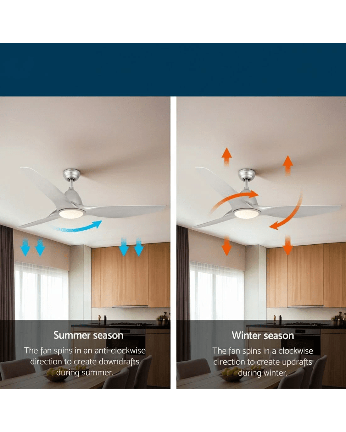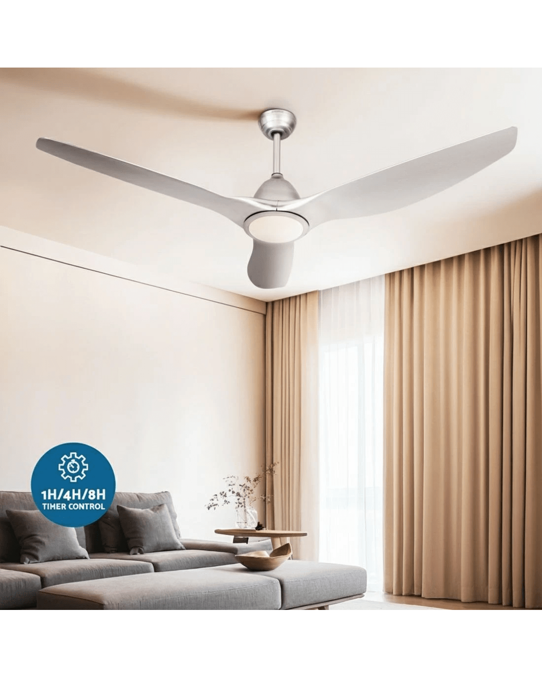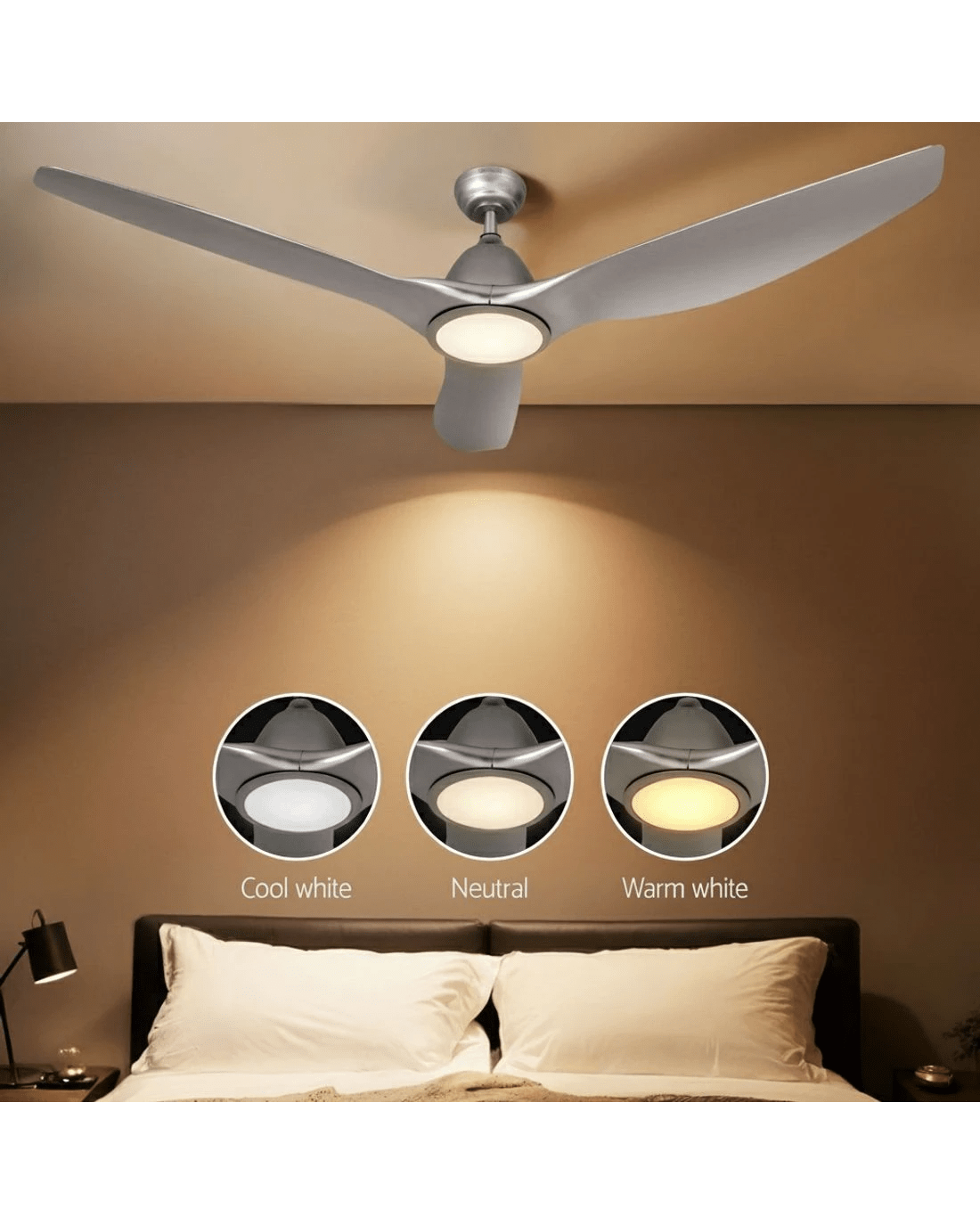 Gentle breezes, light drafts or high winds, our Ceiling Fan is ever ready to meet your requirements easily. With five fan speeds, the contemporary-design ceiling fan features an efficient DC motor that provides ample air circulation and cool breezes throughout the room. Better still, the fan also comes with a reverse cycle mode that can be used for both summer and winter with its smart wind drafts. Plus, the built-in LED light provides ample lighting with three colour choices: warm white, neutral and cool white, to suit your ambient mood. Not least, its energy-efficient 50W motor operates ever so quietly and an 8-hr timer also allows you to preset the fan to start and stop at your desired timing. The ceiling fan also comes with all the accessories for an easy installation including a handy remote control for hassle-free use.