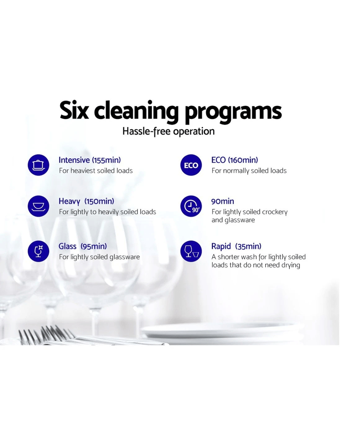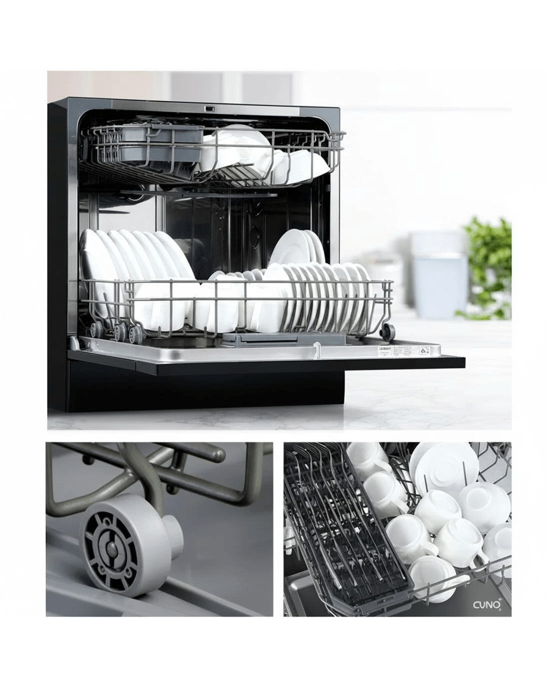 The quiet-operation benchtop dishwasher features eight place settings and six cleaning programs, from intensive to rapid, and a delay start function for that perfect wash. The easy-to-use LED screen display easily guides you along with clear setting indicators for effortlessly dishwashing. Not least, it comes with all the accessories to accommodate your various kitchen, dining and cooking wares and you easily add in left-out dishes to the washing cycle.