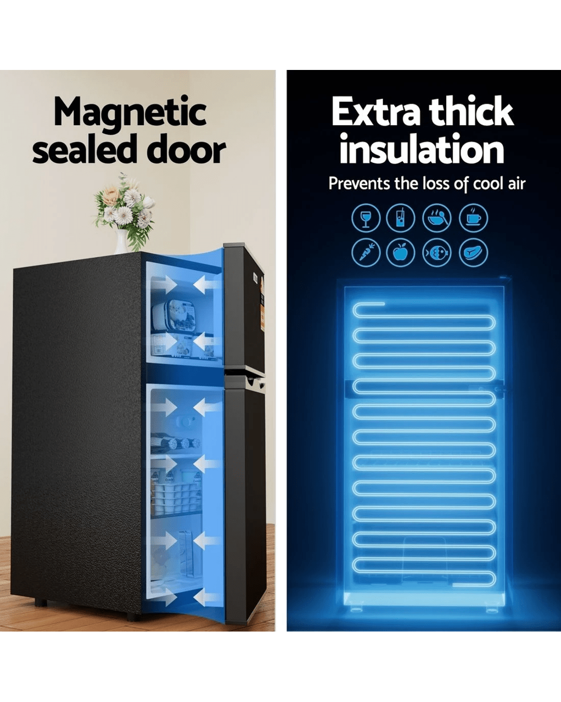 Need a cold one within arm's reach? Our Devanti Bar Fridge has got you covered! Designed for your home, workspace, or business venue, it offers 6 levels temperature control, and a sleek design. Energy-efficient and easy to maintain, this little powerhouse is perfect for all your cooling needs. Get yours and enjoy convenience without compromising on style or functionality!